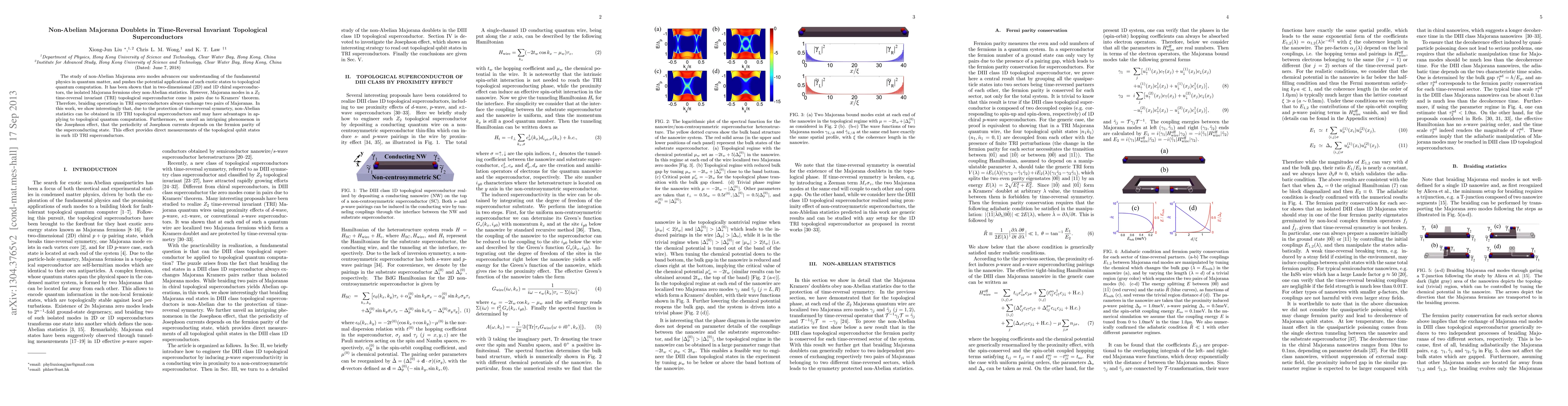 This paper explores non-Abelian Majorana doublets in 1D time-reversal invariant topological superconductors, demonstrating how they can exhibit non-Abelian statistics despite Kramers' theorem. It also reveals a unique Josephson effect periodicity linked to fermion parity, offering a method for direct topological qubit state measurement.