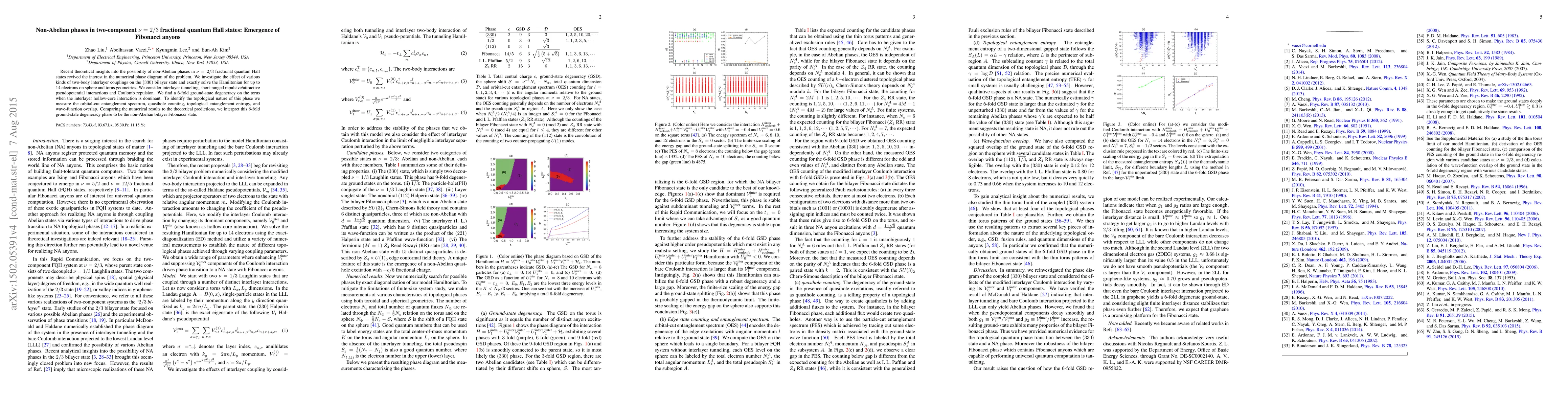 This paper investigates the non-Abelian phases in $\nu=2/3$ fractional quantum Hall states, finding a 6-fold ground-state degeneracy indicative of the non-Abelian bilayer Fibonacci state through numerical analysis and entanglement measures. The study considers various interlayer couplings and confirms the topological nature via entanglement spectrum and quasihole counting.