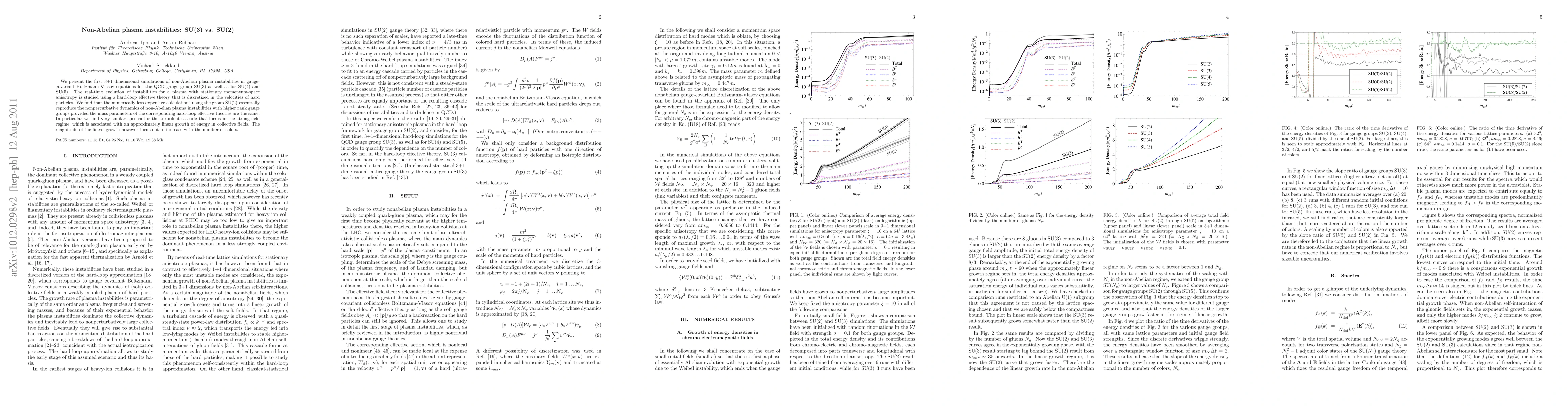 This paper presents 3+1 dimensional simulations comparing non-Abelian plasma instabilities in SU(3) versus higher rank gauge groups, finding that SU(2) calculations reproduce the dynamics of SU(3) and higher groups when mass parameters align. The study reveals similar turbulent cascade spectra but notes an increase in linear growth magnitude with more colors.