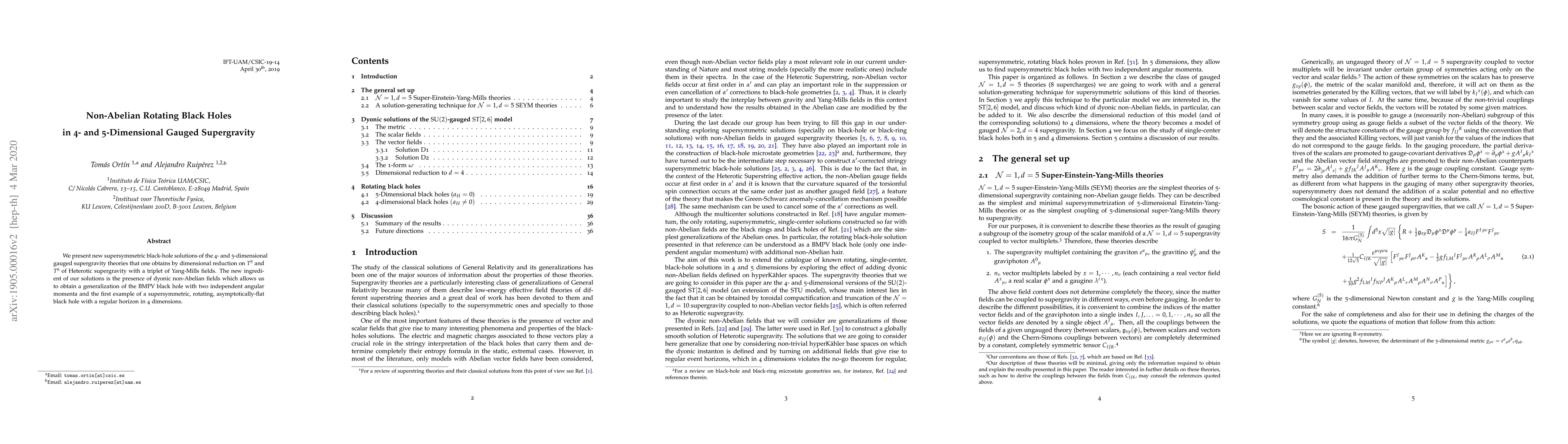 Summary: The paper introduces new supersymmetric black hole solutions in 4- and 5-dimensional gauged supergravity, featuring dyonic non-Abelian fields and generalized BMPV black holes with independent angular momenta, including the first rotating, asymptotically flat black hole with a regular horizon in 4 dimensions.