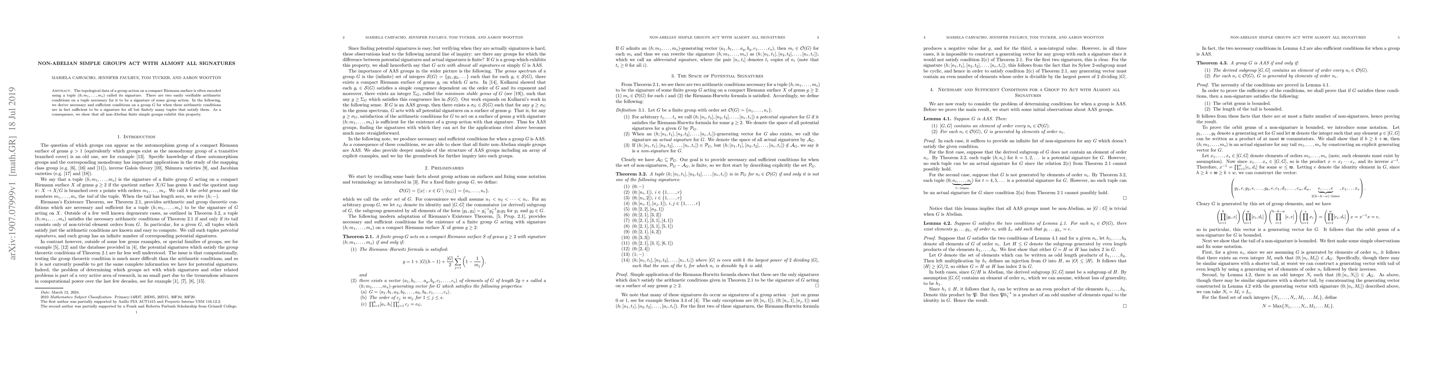 The topological data of a group action on a compact Riemann surface is often encoded using a tuple $(h;m_1,\dots ,m_s)$ called its signature. There are two easily verifiable arithmetic conditions on a tuple necessary for it to be a signature of some group action. In the following, we derive necessary and sufficient conditions on a group $G$ for when these arithmetic conditions are in fact sufficient to be a signature for all but finitely many tuples that satisfy them. As a consequence, we show that all non-Abelian finite simple groups exhibit this property.