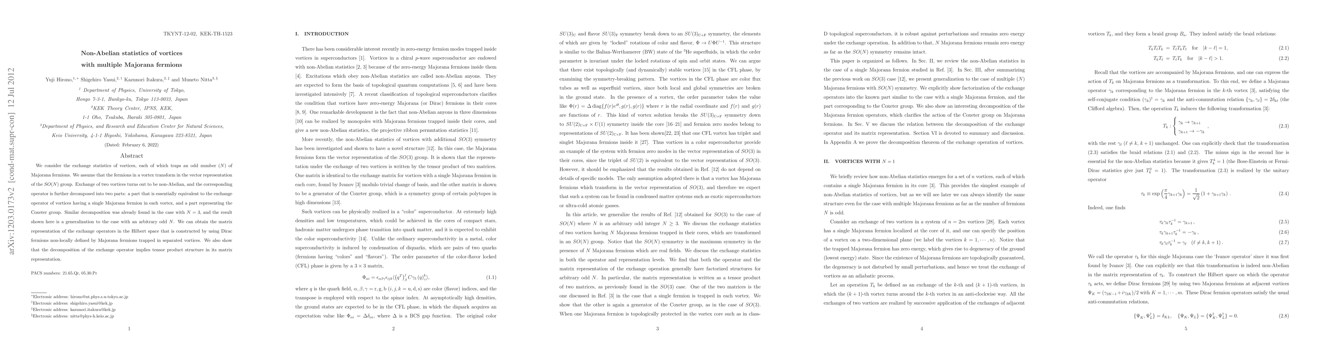 This research generalizes the non-Abelian statistics for vortices trapping an odd number of Majorana fermions, showing that the exchange operator can be decomposed into two parts: one resembling the single Majorana fermion case and another representing the Coxeter group. The study also provides a matrix representation of these operators in a Hilbert space constructed from Majorana fermions.