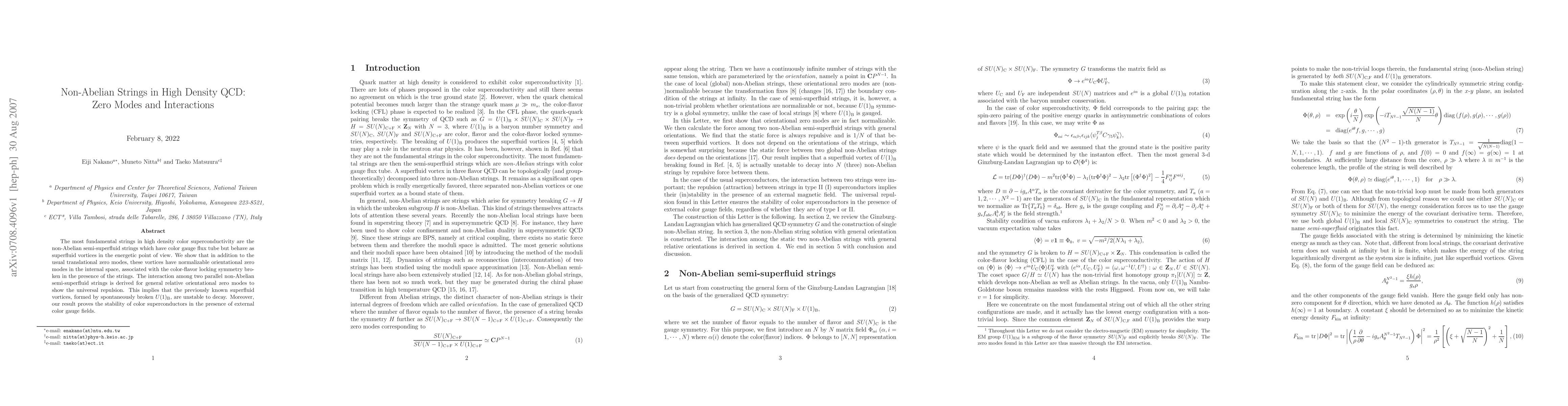 This paper investigates non-Abelian strings in high-density QCD, revealing that these strings exhibit normalizable orientational zero modes due to broken color-flavor locking symmetry. It demonstrates universal repulsion between parallel strings and proves the stability of color superconductors under external color gauge fields.