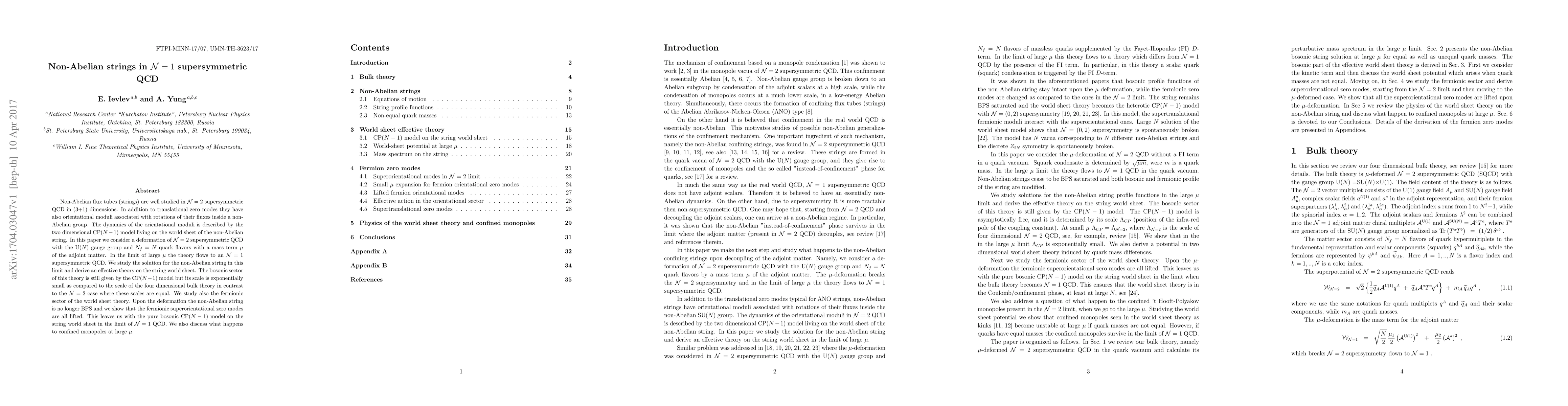This paper investigates non-Abelian strings in N=1 supersymmetric QCD, derived from a deformation of N=2 supersymmetric QCD with large adjoint mass. It finds that in the N=1 limit, the non-Abelian string retains a bosonic CP(N-1) model on its world sheet, while fermionic zero modes are lifted, leaving only the bosonic sector active.