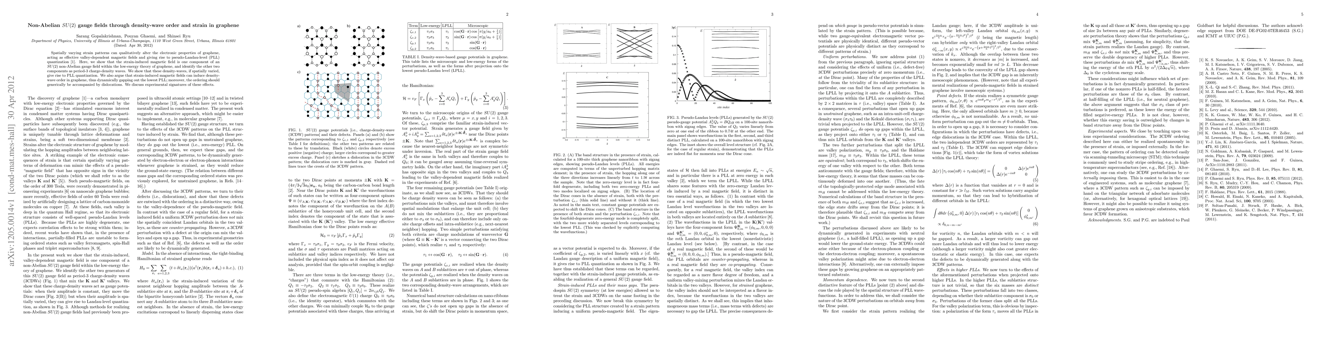 This paper demonstrates that spatially varying strain in graphene generates an SU(2) non-Abelian gauge field, with one component being a strain-induced magnetic field and the other two components arising from period-3 charge-density waves. The study also suggests that these density-waves can dynamically gap the lowest pseudo-Landau level and proposes experimental signatures for these phenomena.