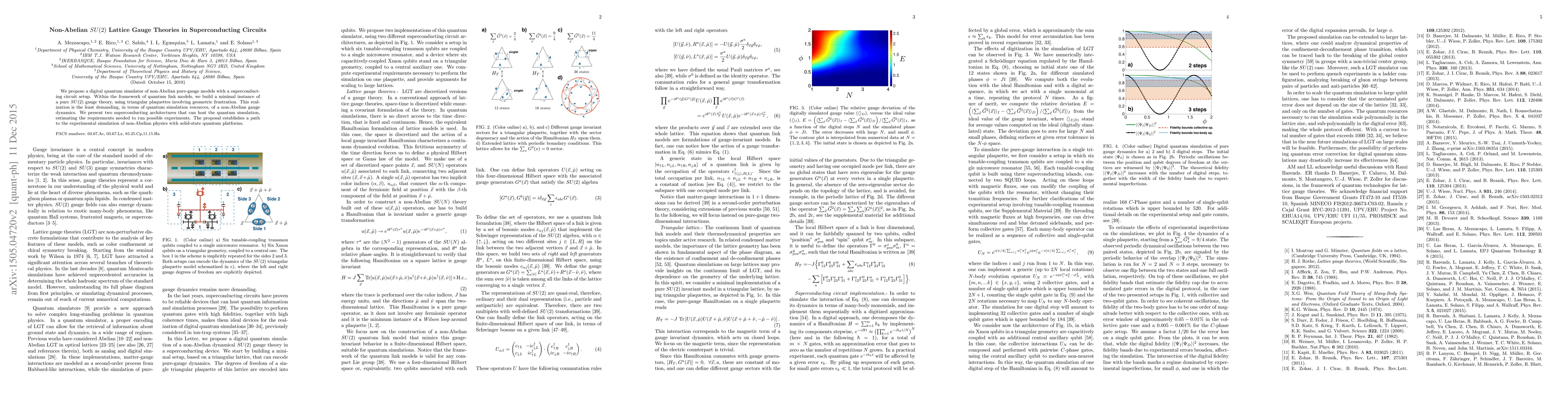We propose a digital quantum simulator of non-Abelian pure-gauge models with a superconducting circuit setup. Within the framework of quantum link models, we build a minimal instance of a pure $SU(2)$ gauge theory, using triangular plaquettes involving geometric frustration. This realization is the least demanding, in terms of quantum simulation resources, of a non-Abelian gauge dynamics. We present two superconducting architectures that can host the quantum simulation, estimating the requirements needed to run possible experiments. The proposal establishes a path to the experimental simulation of non-Abelian physics with solid-state quantum platforms.