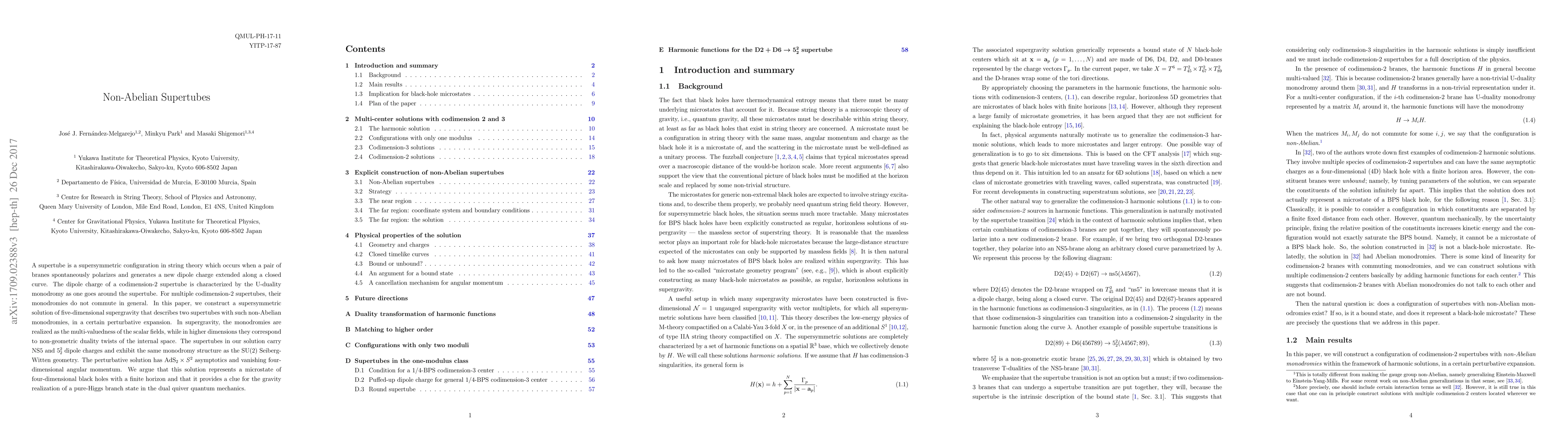 A supertube is a supersymmetric configuration in string theory which occurs when a pair of branes spontaneously polarizes and generates a new dipole charge extended along a closed curve. The dipole charge of a codimension-2 supertube is characterized by the U-duality monodromy as one goes around the supertube. For multiple codimension-2 supertubes, their monodromies do not commute in general. In this paper, we construct a supersymmetric solution of five-dimensional supergravity that describes two supertubes with such non-Abelian monodromies, in a certain perturbative expansion. In supergravity, the monodromies are realized as the multi-valuedness of the scalar fields, while in higher dimensions they correspond to non-geometric duality twists of the internal space. The supertubes in our solution carry NS5 and 5$_2^2$ dipole charges and exhibit the same monodromy structure as the SU(2) Seiberg-Witten geometry. The perturbative solution has $\mathrm{AdS}_2\times S^2$ asymptotics and vanishing four-dimensional angular momentum. We argue that this solution represents a microstate of four-dimensional black holes with a finite horizon and that it provides a clue for the gravity realization of a pure-Higgs branch state in the dual quiver quantum mechanics.