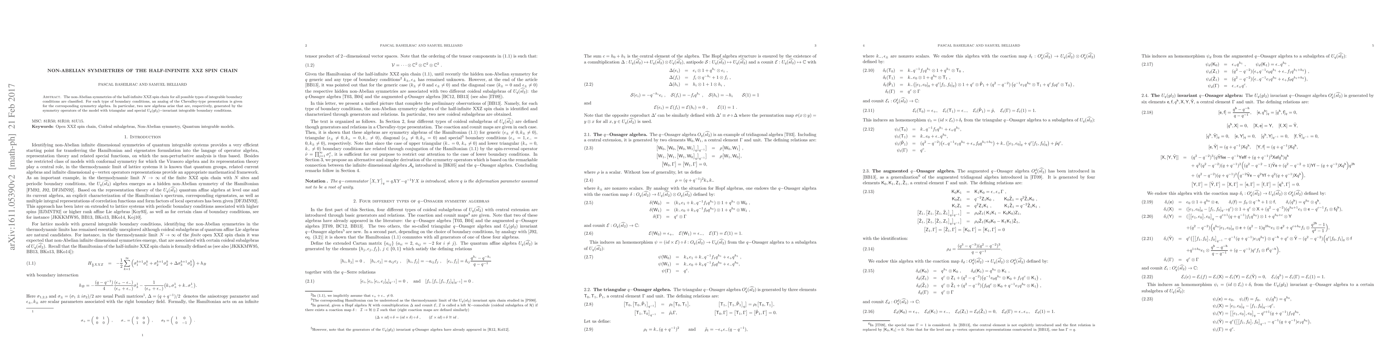 The paper classifies non-Abelian symmetries of the half-infinite XXZ spin chain under various integrable boundary conditions, presenting new symmetry algebras for triangular and special $U_q(gl_2)$-invariant conditions. These findings provide a detailed Chevalley-type structure for the symmetry algebras associated with different boundary conditions.