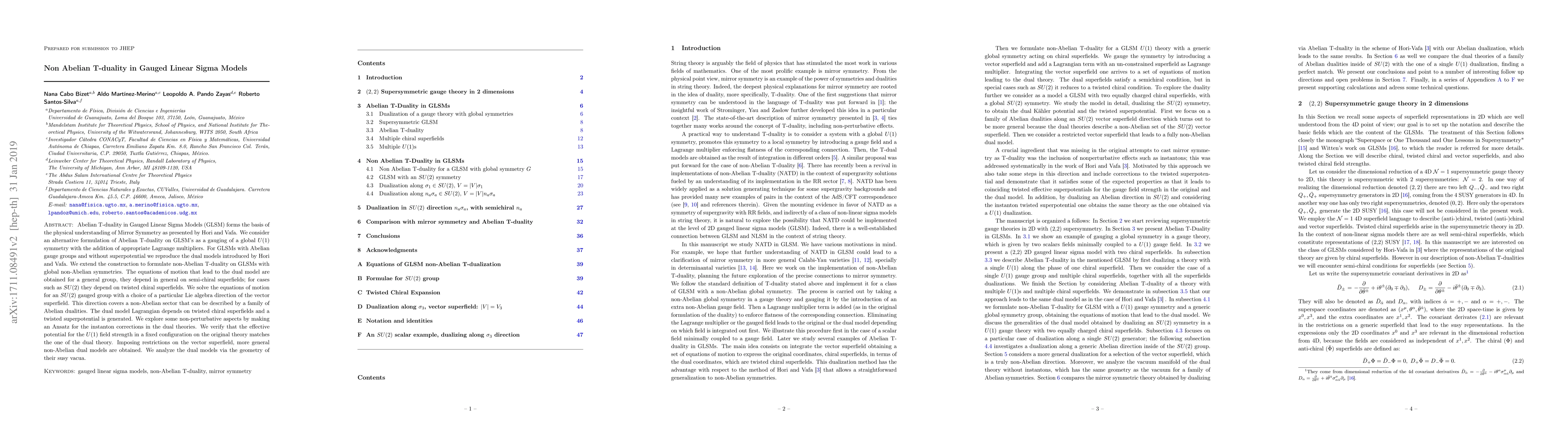 This paper investigates the formulation of non-Abelian T-duality in Gauged Linear Sigma Models (GLSMs) by extending the known Abelian T-duality framework. It derives equations of motion for dual models, particularly focusing on $SU(2)$ gauge groups, and verifies matching effective potentials between the original and dual theories, demonstrating the robustness of the proposed non-Abelian dualities.