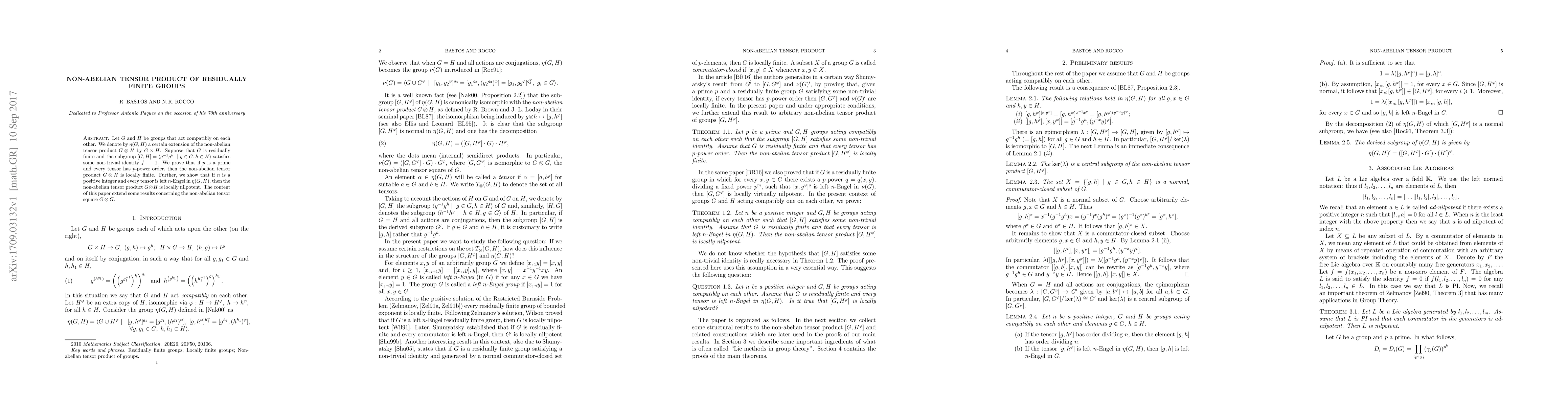 This paper investigates the non-abelian tensor product $\eta(G,H)$ of residually finite groups $G$ and $H$, showing that under certain conditions on $p$-power order and $n$-Engel elements, the product $G \otimes H$ is locally finite or locally nilpotent. The results extend findings on the non-abelian tensor square $G \otimes G$.