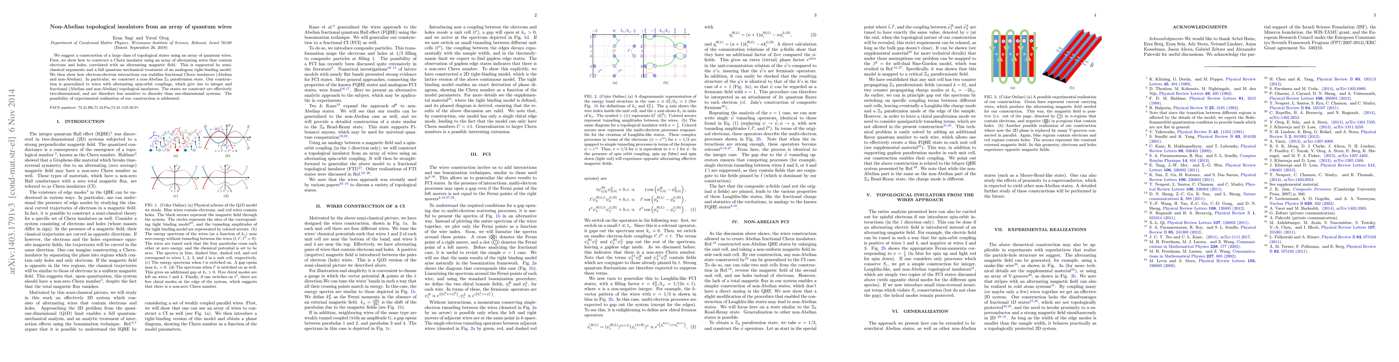 We suggest a construction of a large class of topological states using an array of quantum wires. First, we show how to construct a Chern insulator using an array of alternating wires that contain electrons and holes, correlated with an alternating magnetic field. This is supported by semi-classical arguments and a full quantum mechanical treatment of an analogous tight-binding model. We then show how electron-electron interactions can stabilize fractional Chern insulators (Abelian and non-Abelian). In particular, we construct a relatively stable non-Abelian $\mathbb{Z}_{3}$ parafermion state. Our construction is generalized to wires with alternating spin-orbit couplings, which give rise to integer and fractional (Abelian and non-Abelian) topological insulators. The states we construct are effectively two-dimensional, and are therefore less sensitive to disorder than one-dimensional systems. The possibility of experimental realization of our construction is addressed.