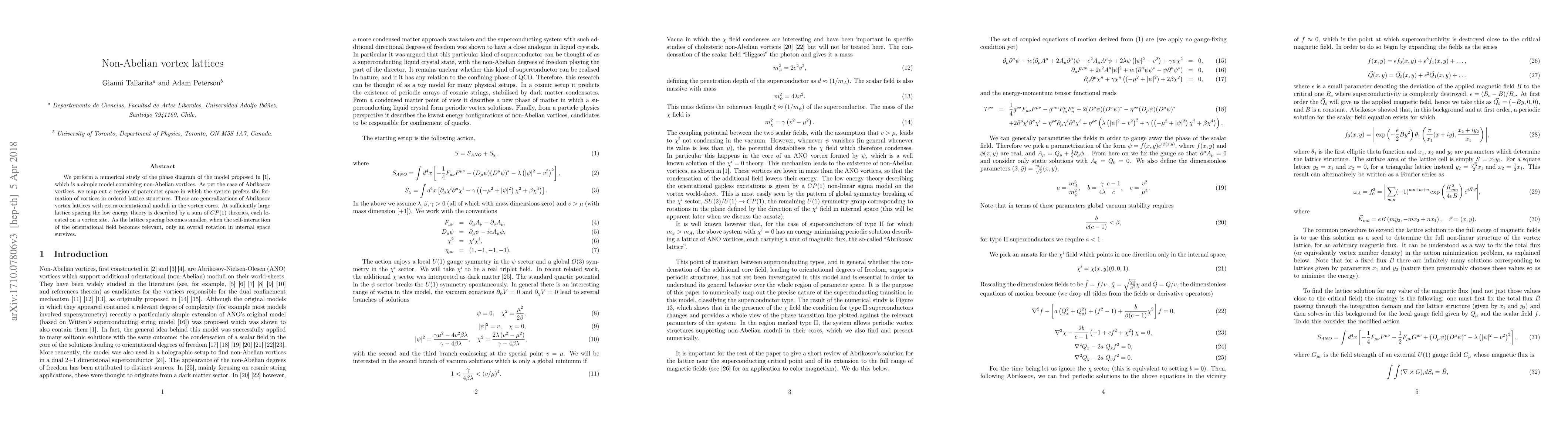 We perform a numerical study of the phase diagram of the model proposed in \cite{Shifman:2012vv}, which is a simple model containing non-Abelian vortices. As per the case of Abrikosov vortices, we map out a region of parameter space in which the system prefers the formation of vortices in ordered lattice structures. These are generalizations of Abrikosov vortex lattices with extra orientational moduli in the vortex cores. At sufficiently large lattice spacing the low energy theory is described by a sum of $CP(1)$ theories, each located on a vortex site. As the lattice spacing becomes smaller, when the self-interaction of the orientational field becomes relevant, only an overall rotation in internal space survives.