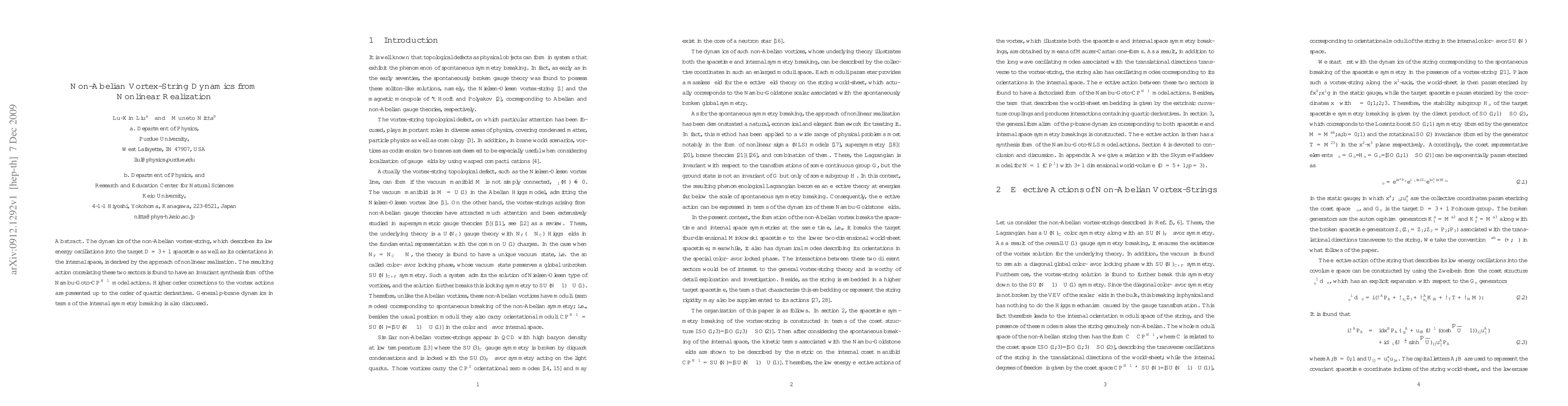 The dynamics of the non-Abelian vortex-string, which describes its low energy oscillations into the target $D=3+1$ spacetime as well as its orientations in the internal space, is derived by the approach of nonlinear realization. The resulting action correlating these two sectors is found to have an invariant synthesis form of the Nambu-Goto-${\bf C}P^{N-1}$ model actions. Higher order corrections to the vortex actions are presented up to the order of quartic derivatives. General $p$-brane dynamics in terms of the internal symmetry breaking is also discussed.