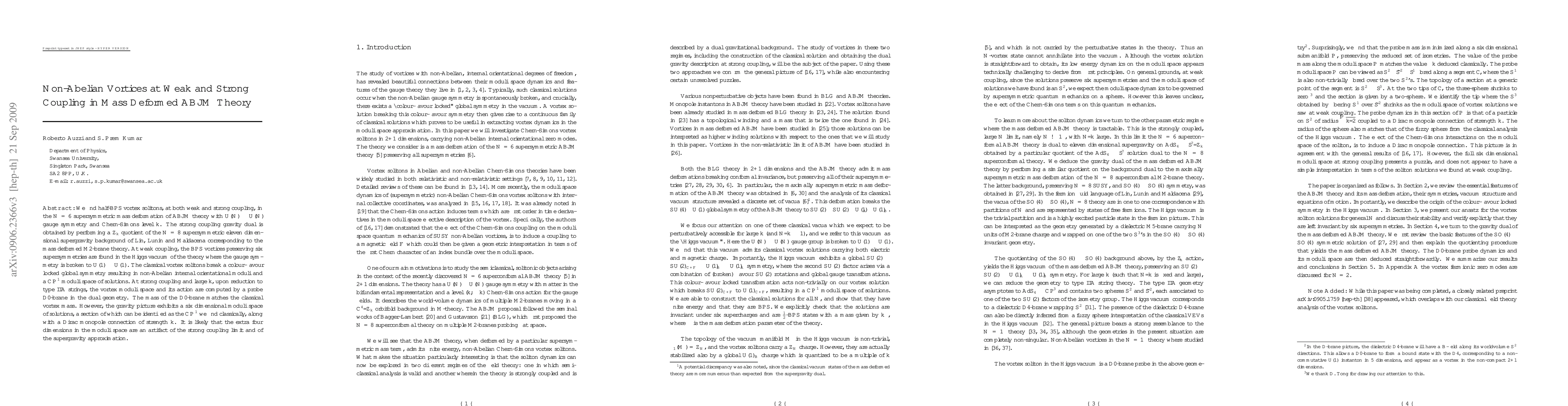 This paper investigates half-BPS vortex solitons in the N=6 mass deformed ABJM theory at both weak and strong coupling, revealing non-Abelian internal moduli and a CP^1 moduli space. The strong coupling dual is derived from an N=8 eleven-dimensional supergravity background, showing a six-dimensional moduli space, with potential extra dimensions attributed to the supergravity approximation.