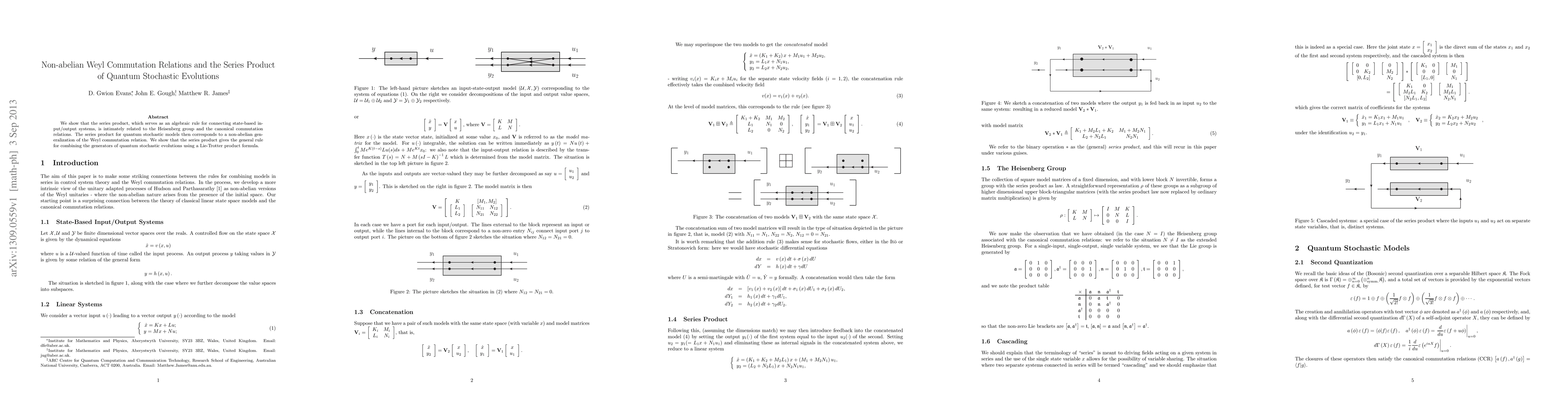 We show that the series product, which serves as an algebraic rule for connecting state-based input/output systems, is intimately related to the Heisenberg group and the canonical commutation relations. The series product for quantum stochastic models then corresponds to a non-abelian generalization of the Weyl commutation relation. We show that the series product gives the general rule for combining the generators of quantum stochastic evolutions using a Lie-Trotter product formula.