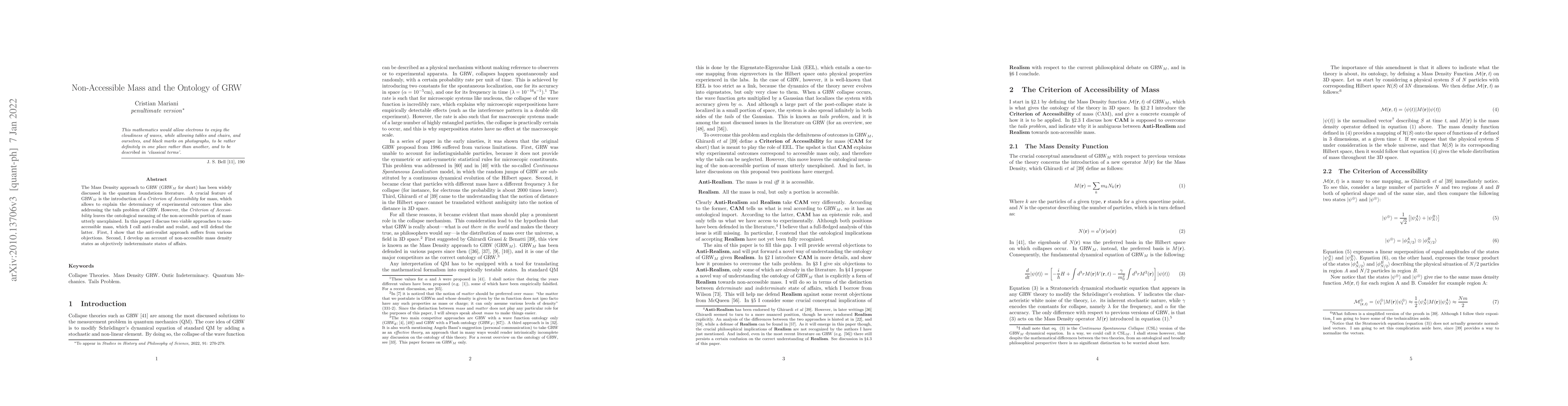 This paper defends a realist approach to non-accessible mass in the context of GRW (GRWm), proposing that it is objectively indeterminate and addressing the ontological meaning of this concept.