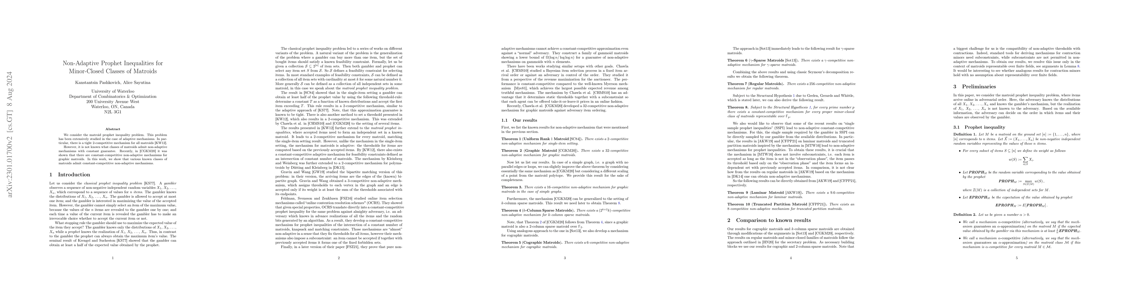 This paper investigates the matroid prophet inequality problem, focusing on non-adaptive mechanisms. It demonstrates that several known classes of matroids, beyond just graphic matroids, can support constant-competitive non-adaptive mechanisms.