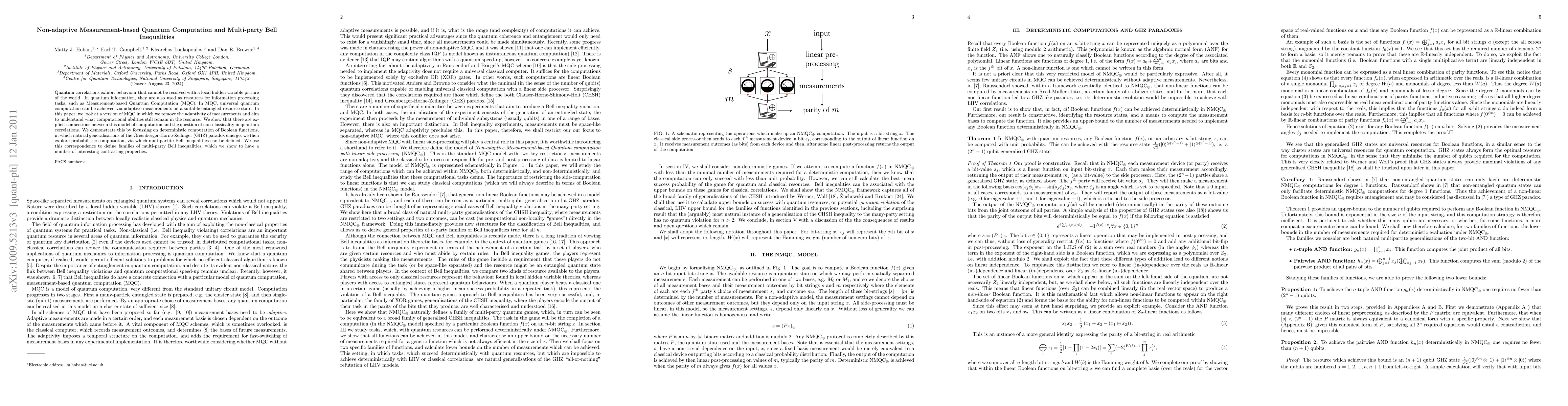 This paper explores non-adaptive Measurement-based Quantum Computation (MQC) without adaptive measurements, revealing its computational abilities and connections to non-classicality in quantum correlations. It demonstrates deterministic and probabilistic computation, linking these to multipartite Bell inequalities and highlighting their unique properties.