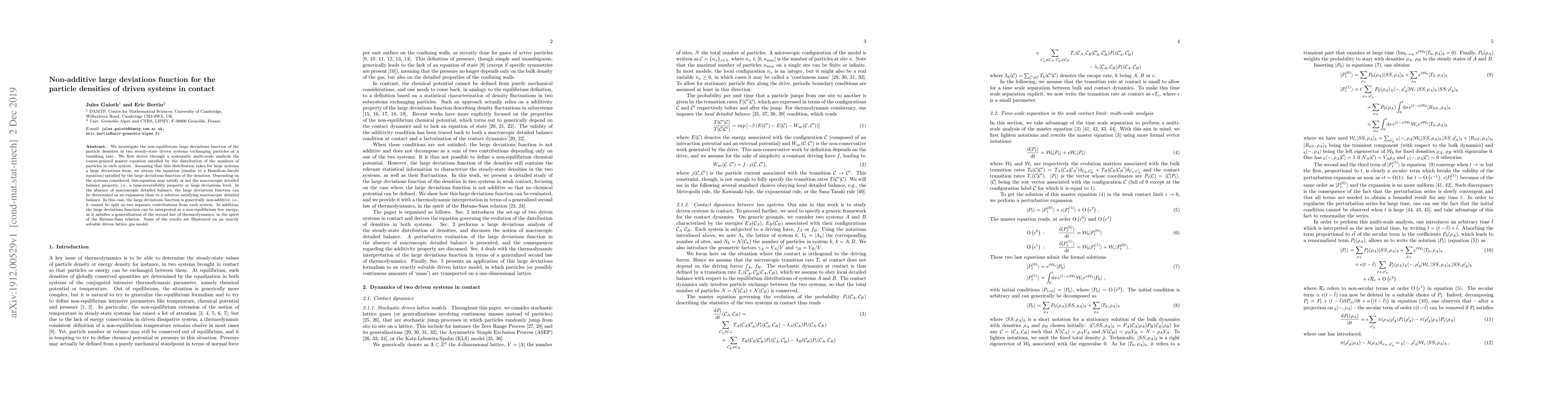 We investigate the non-equilibrium large deviations function of the particle densities in two steady-state driven systems exchanging particles at a vanishing rate. We first derive through a systematic multi-scale analysis the coarse-grained master equation satisfied by the distribution of the numbers of particles in each system. Assuming that this distribution takes for large systems a large deviations form, we obtain the equation (similar to a Hamilton-Jacobi equation) satisfied by the large deviations function of the densities. Depending on the systems considered, this equation may satisfy or not the macroscopic detailed balance property, i.e., a time-reversibility property at large deviations level. In the absence of macroscopic detailed balance, the large deviations function can be determined as an expansion close to a solution satisfying macroscopic detailed balance. In this case, the large deviations function is generically non-additive, i.e., it cannot be split as two separate contributions from each system. In addition, the large deviations function can be interpreted as a non-equilibrium free energy, as it satisfies a generalization of the second law of thermodynamics, in the spirit of the Hatano-Sasa relation. Some of the results are illustrated on an exactly solvable driven lattice gas model.