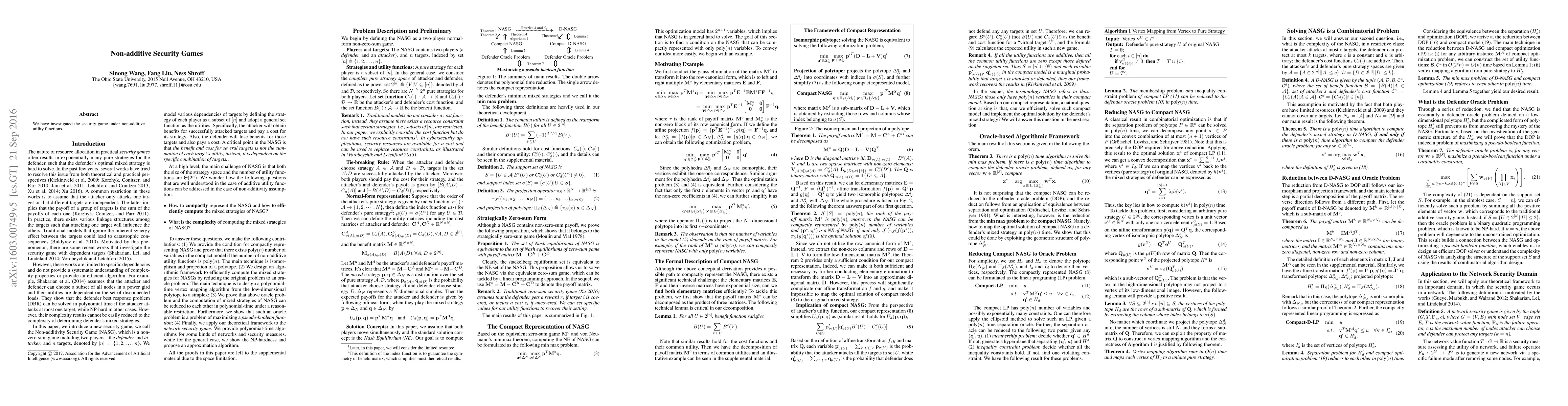 Summary: This paper explores security games where the utility functions are non-additive, examining how these alternative utility structures impact strategic decision-making and outcomes in security scenarios.