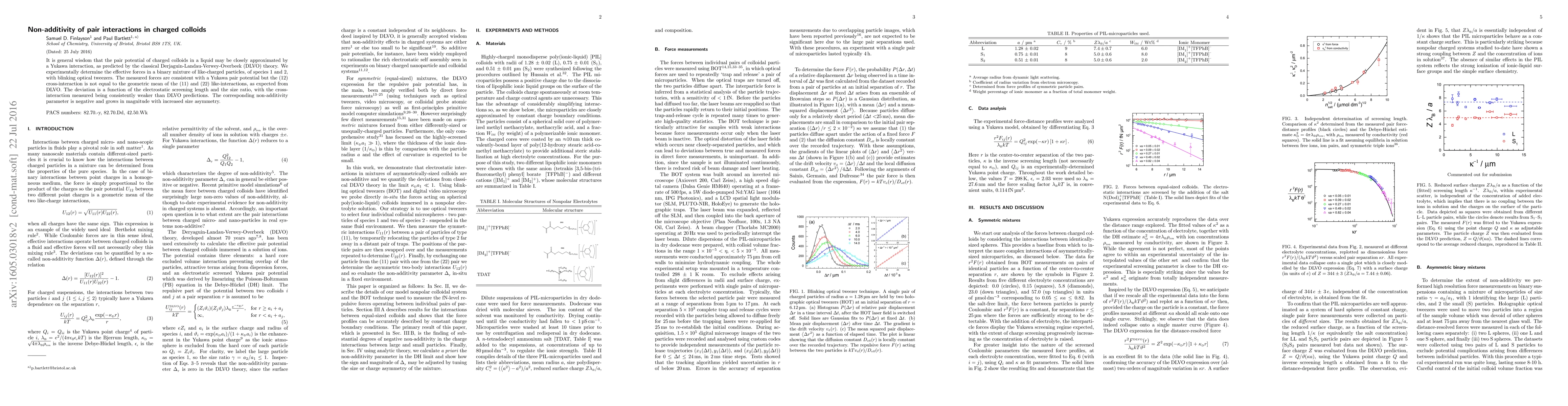 Researchers found that the forces between charged particles don't always add up as predicted by a widely used theory, and this non-additivity is influenced by factors like electrostatic screening length and particle size ratio.