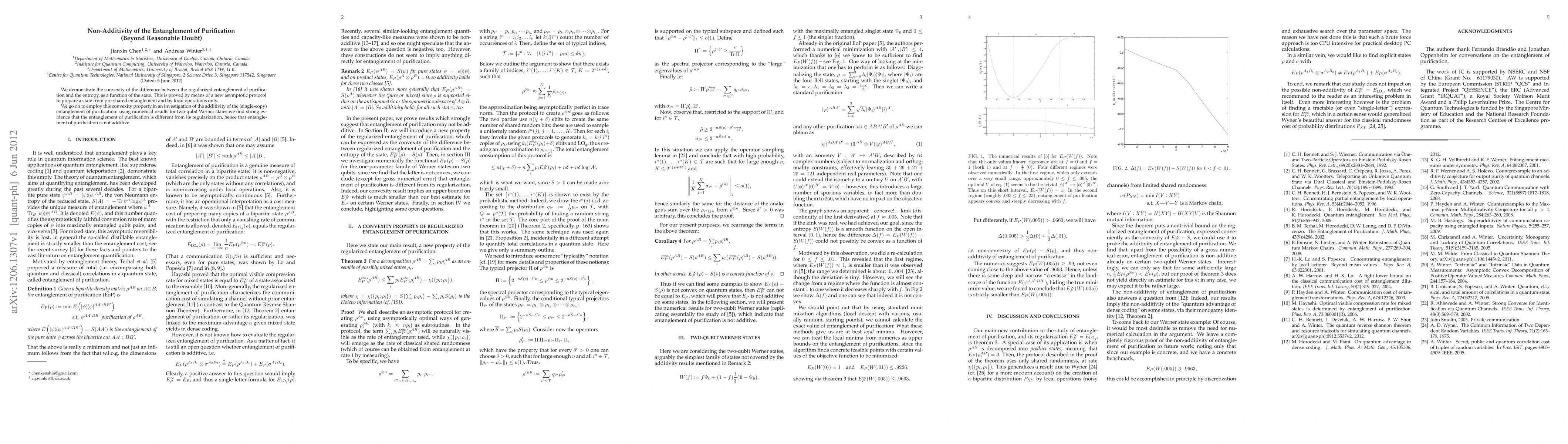 We demonstrate the convexity of the difference between the regularized entanglement of purification and the entropy, as a function of the state. This is proved by means of a new asymptotic protocol to prepare a state from pre-shared entanglement and by local operations only. We go on to employ this convexity property in an investigation of the additivity of the (single-copy) entanglement of purification: using numerical results for two-qubit Werner states we find strong evidence that the entanglement of purification is different from its regularization, hence that entanglement of purification is not additive.