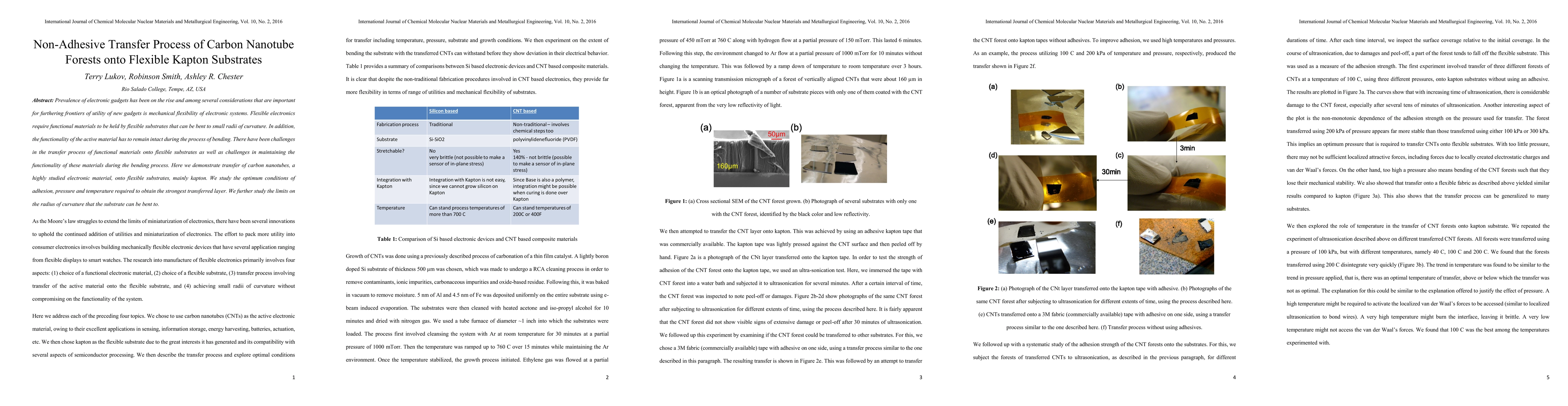 Researchers developed a method to transfer carbon nanotubes onto flexible Kapton substrates without adhesion, allowing for bendable electronic systems with intact functionality. They found optimal conditions for pressure, temperature, and curvature radius to achieve the strongest transferred layer.