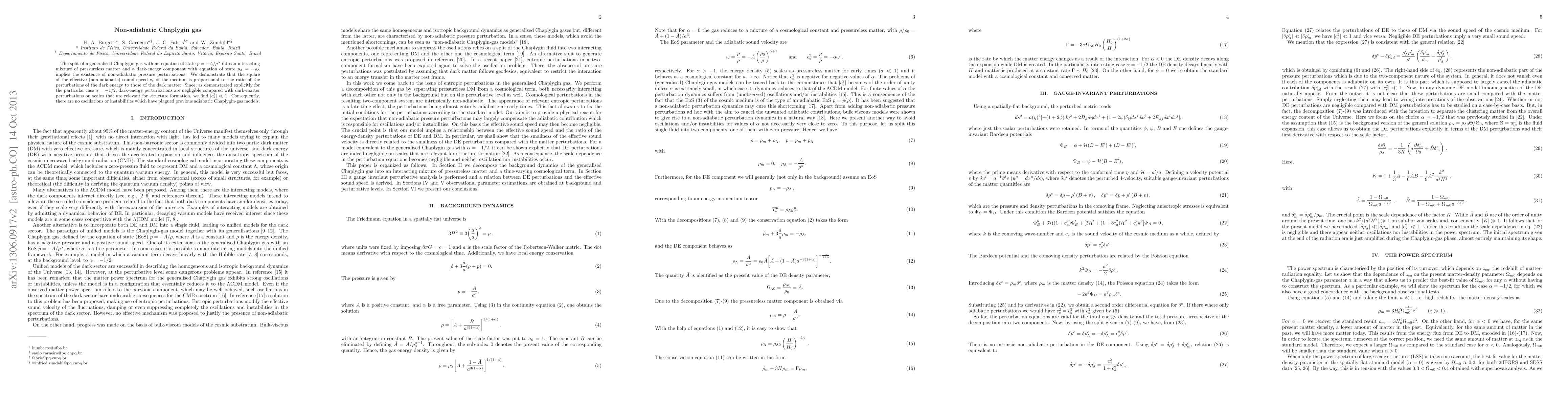 This paper explores non-adiabatic perturbations in a generalised Chaplygin gas, showing that its split into pressureless matter and dark energy leads to non-adiabatic sound speed. For the case where α = -1/2, the dark-energy perturbations are negligible, resulting in a very small effective sound speed squared, thus avoiding oscillations or instabilities seen in adiabatic models.