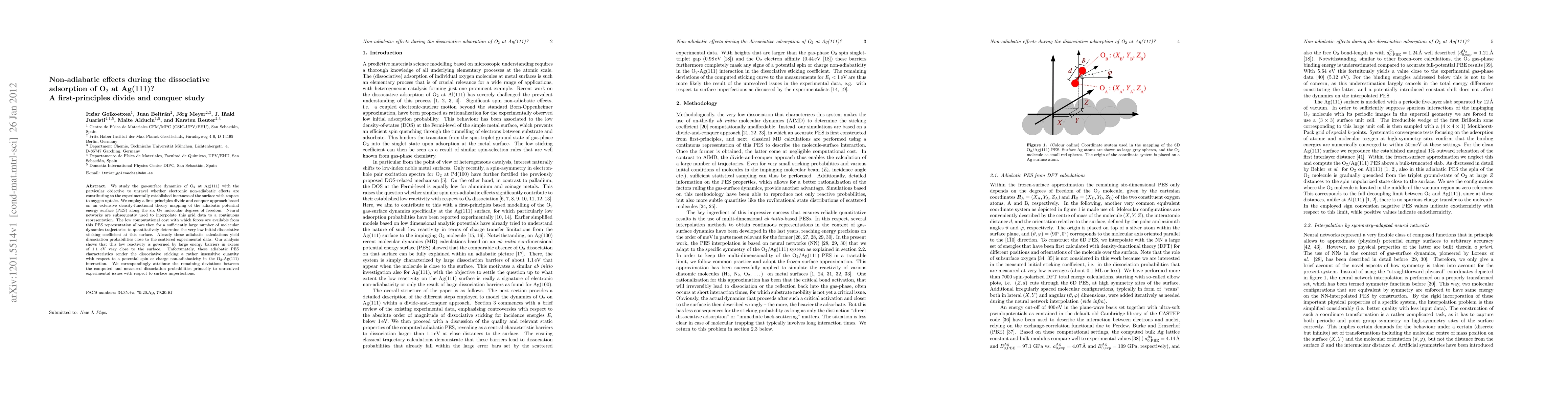 We study the gas-surface dynamics of O2 at Ag(111) with the particular objective to unravel whether electronic non-adiabatic effects are contributing to the experimentally established inertness of the surface with respect to oxygen uptake. We employ a first-principles divide and conquer approach based on an extensive density-functional theory mapping of the adiabatic potential energy surface (PES) along the six O2 molecular degrees of freedom. Neural networks are subsequently used to interpolate this grid data to a continuous representation. The low computational cost with which forces are available from this PES representation allows then for a sufficiently large number of molecular dynamics trajectories to quantitatively determine the very low initial dissociative sticking coefficient at this surface. Already these adiabatic calculations yield dissociation probabilities close to the scattered experimental data. Our analysis shows that this low reactivity is governed by large energy barriers in excess of 1.1 eV very close to the surface. Unfortunately, these adiabatic PES characteristics render the dissociative sticking a rather insensitive quantity with respect to a potential spin or charge non-adiabaticity in the O2-Ag(111) interaction. We correspondingly attribute the remaining deviations between the computed and measured dissociation probabilities primarily to unresolved experimental issues with respect to surface imperfections.