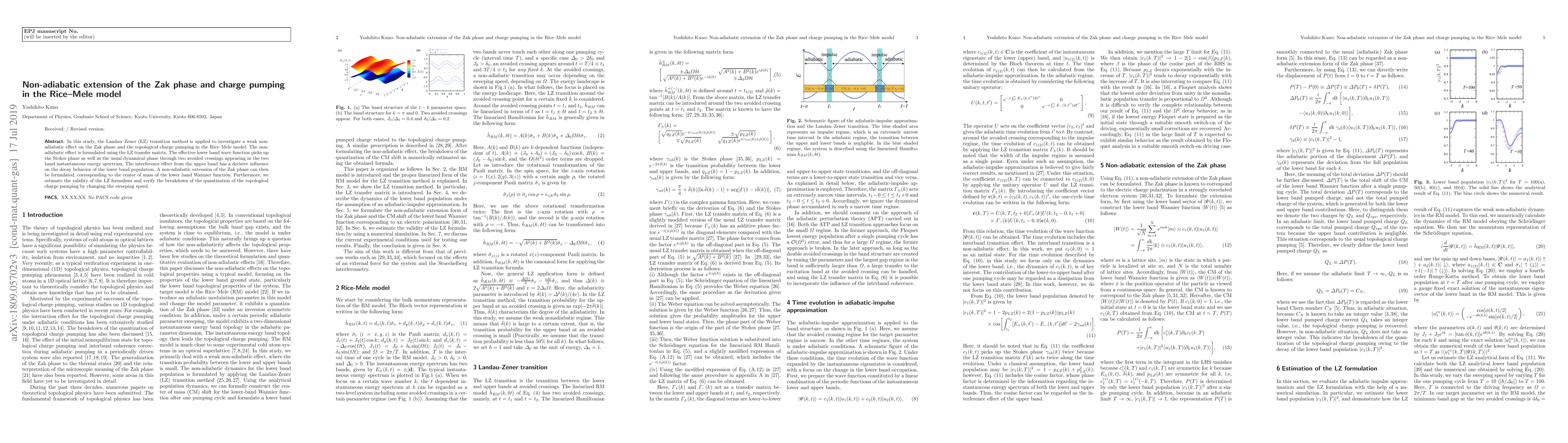 This paper investigates non-adiabatic effects on the Zak phase and topological charge pumping in the Rice-Mele model using the Landau-Zener transition method. It formulates the non-adiabatic effect through the LZ transfer matrix and shows how the effective lower band wave function acquires additional phases, leading to a non-adiabatic extension of the Zak phase and affecting charge pumping quantization.
