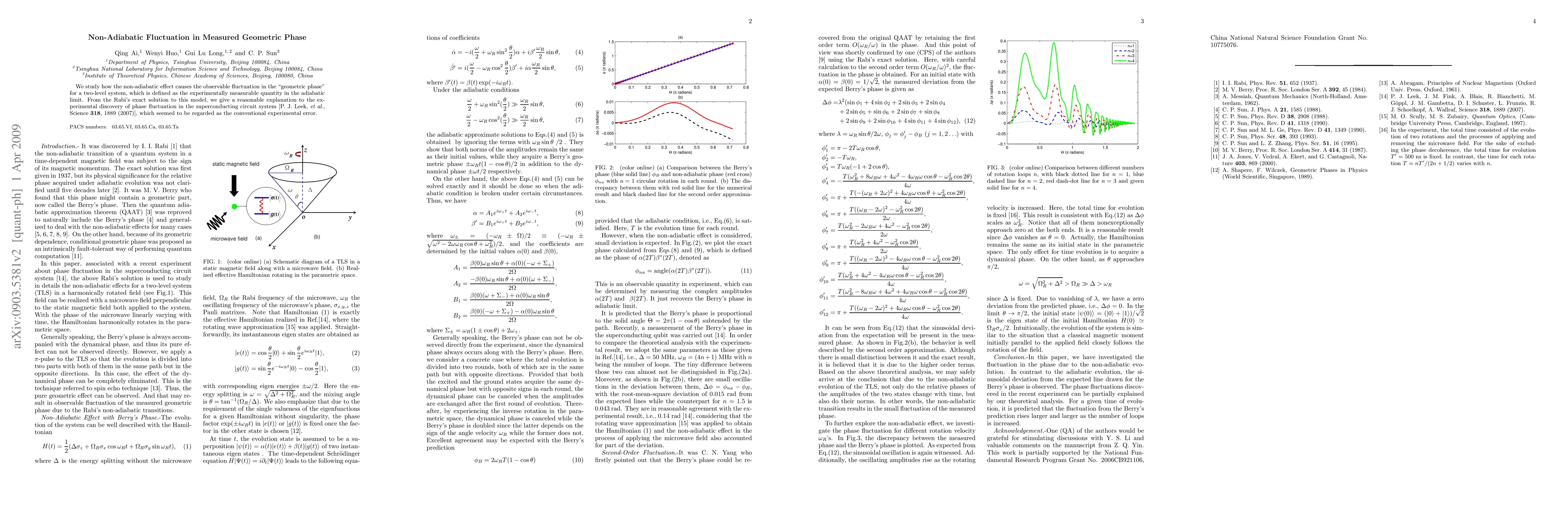 This paper investigates the non-adiabatic effects leading to observable fluctuations in the geometric phase for a two-level system, providing a theoretical explanation for the experimental phase fluctuations observed in superconducting circuits, previously considered as conventional errors.
