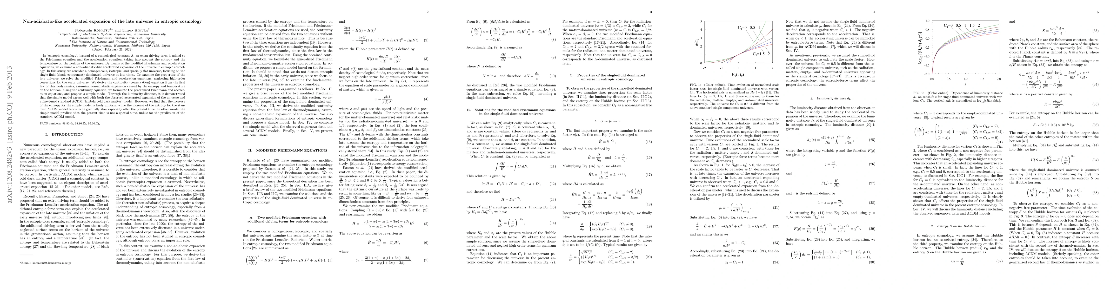 This paper explores a non-adiabatic-like accelerated expansion in entropic cosmology, proposing a modified Friedmann equation that incorporates entropy and temperature on the horizon. The study finds that the model aligns well with observed accelerated expansion and differs from the standard $\Lambda$CDM model by predicting a uniform entropy increase rather than a gradual slowdown.