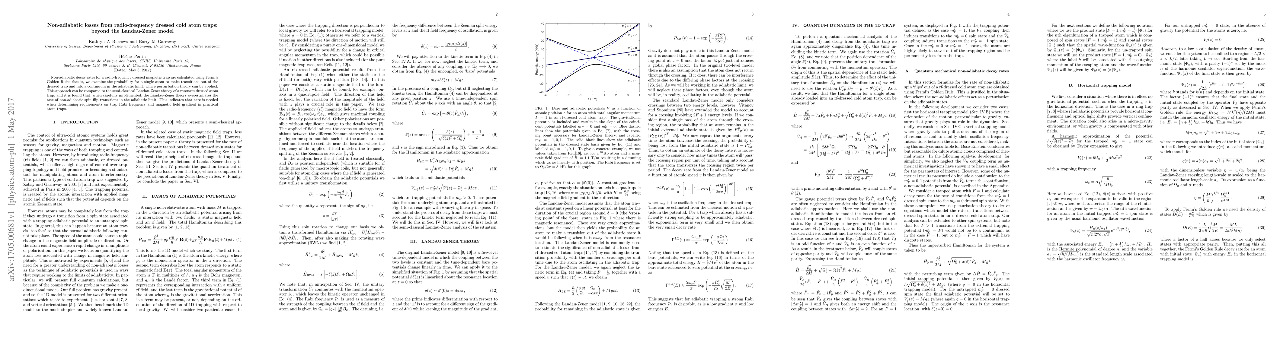 This research calculates non-adiabatic decay rates for radio-frequency dressed cold atom traps using Fermi's Golden Rule, finding that the Landau-Zener model overestimates transition rates in the adiabatic limit, which is critical for designing effective atom traps.