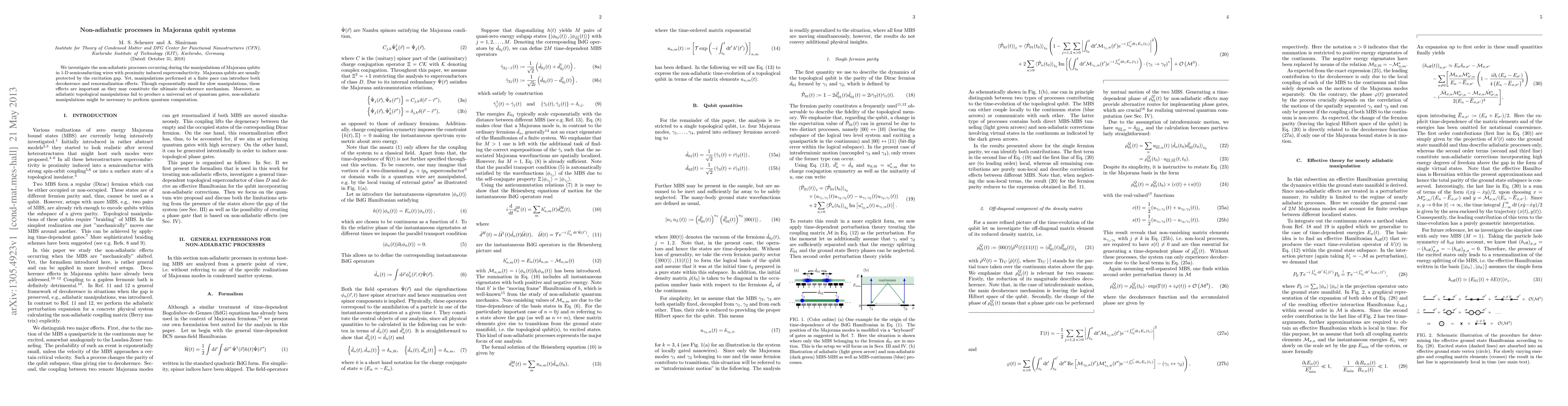 This paper explores non-adiabatic processes in Majorana qubits during manipulations in semiconducting wires with induced superconductivity. While adiabatic processes are typically favored, non-adiabatic effects, though small, can introduce decoherence and renormalization, potentially serving as the ultimate decoherence mechanism and may be necessary for universal quantum gate operations.