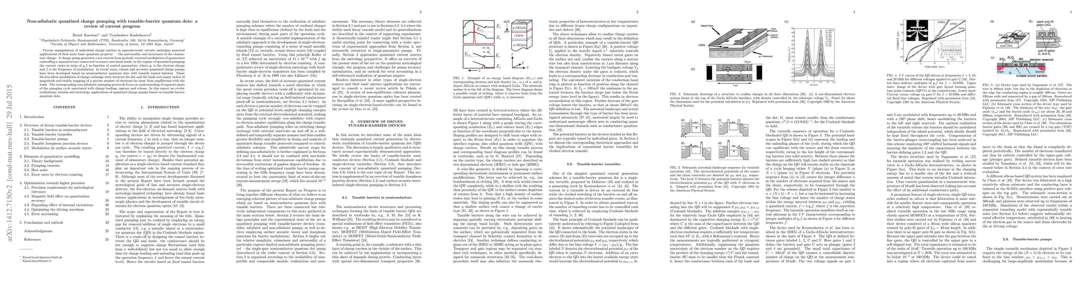 This paper reviews advancements in non-adiabatic quantized charge pumping using tunable-barrier quantum dots, focusing on the precise control of charge carriers in nanoelectronics and the development of robust charge pumps that modulate charge exchange rates and trap electrons accurately. It discusses the underlying models and potential metrology applications of these devices.
