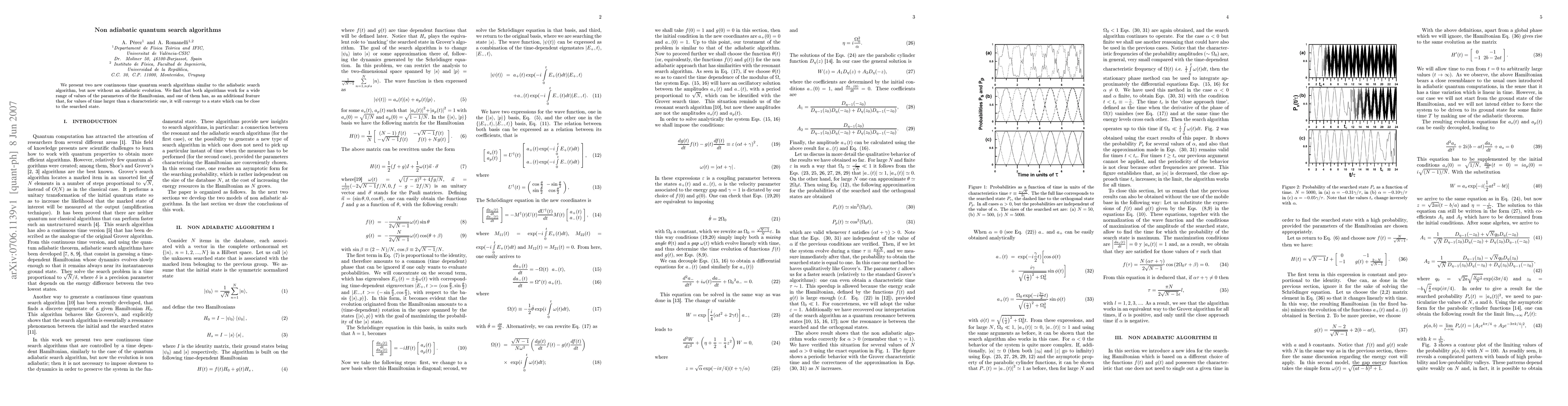 This paper introduces two continuous time quantum search algorithms that diverge from adiabatic search by not requiring adiabatic evolution. Both algorithms function effectively across various Hamiltonian parameter values, and one notably converges to a state close to the target search state after a certain time.