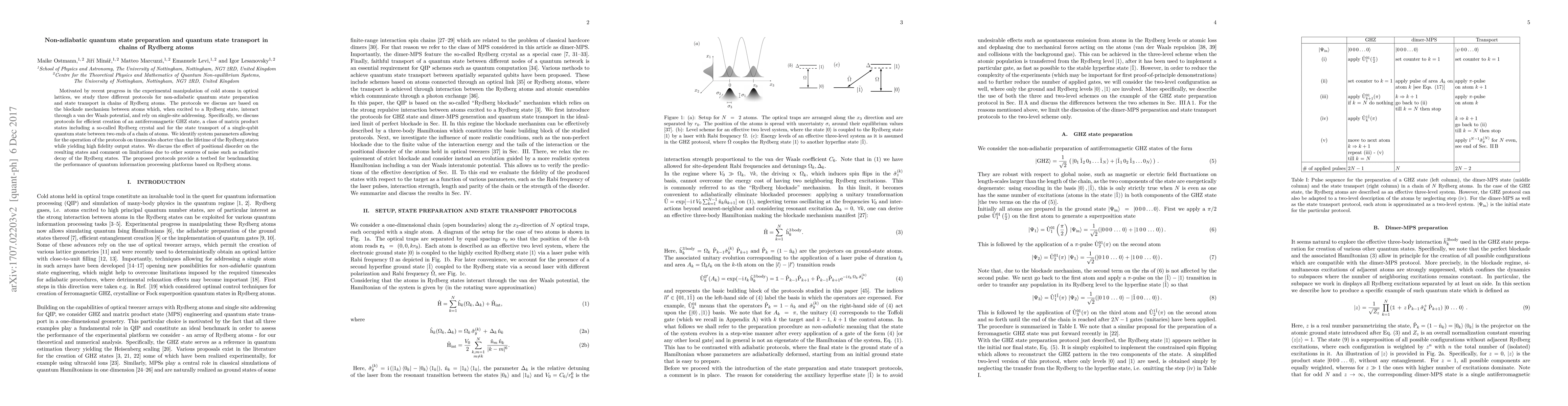 This paper explores three protocols for non-adiabatic quantum state preparation and transport in Rydberg atom chains using blockade mechanisms. The protocols focus on creating antiferromagnetic GHZ states, Rydberg crystals, and transporting single-qubit states, while considering system parameters and noise effects to ensure high fidelity and short operation timescales.