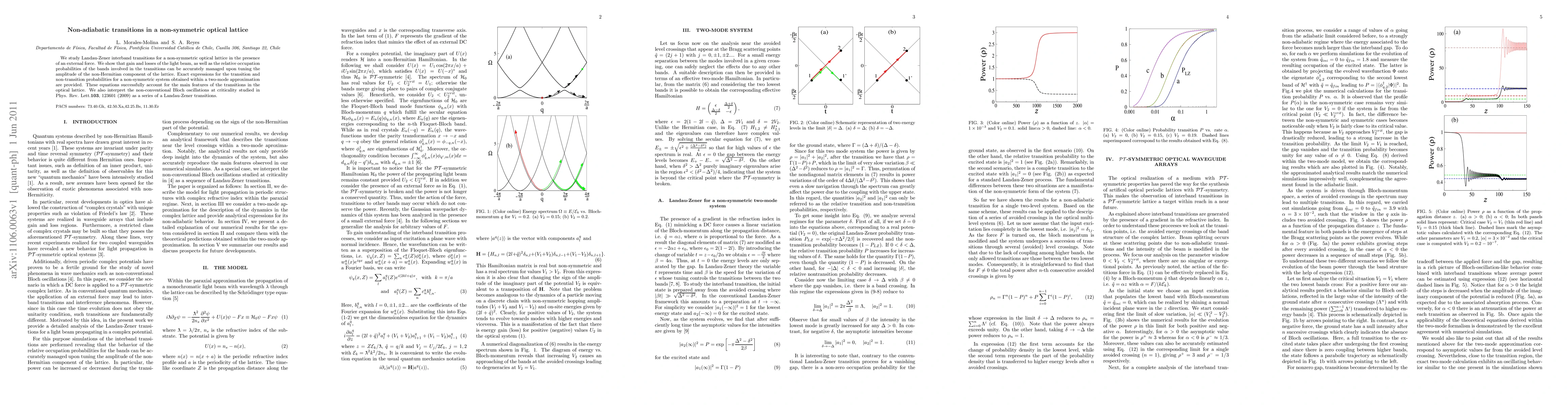 Researchers studied non-adiabatic transitions in a non-symmetric optical lattice with an external force, finding that the amplitude of the non-Hermitian component can control gain and loss probabilities.