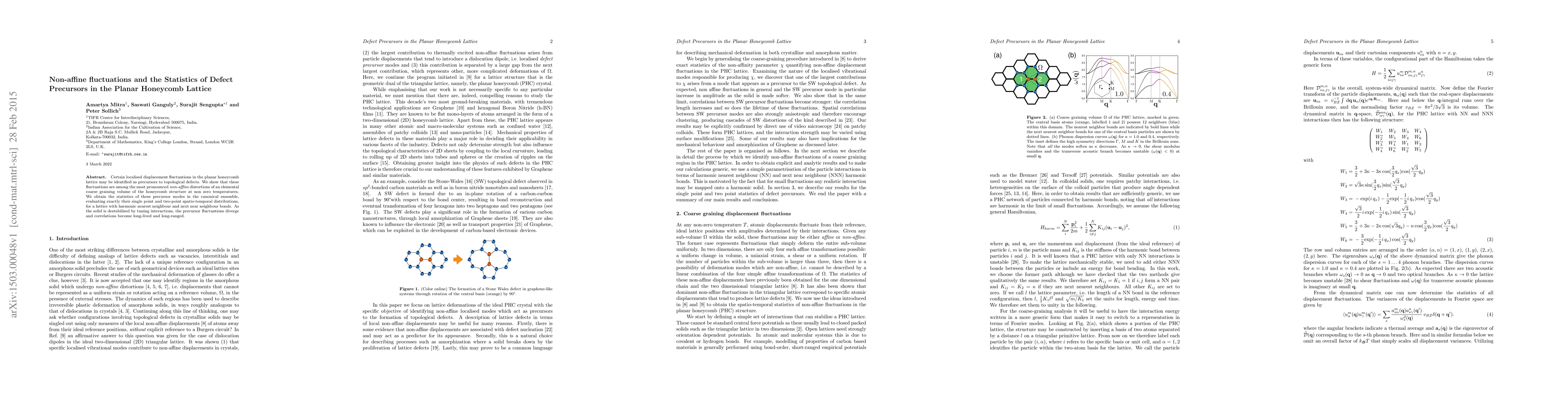 Certain localised displacement fluctuations in the planar honeycomb lattice may be identified as precursors to topological defects. We show that these fluctuations are among the most pronounced {\em non-affine} distortions of an elemental coarse graining volume of the honeycomb structure at non zero temperatures. We obtain the statistics of these precursor modes in the canonical ensemble, evaluating exactly their single point and two-point spatio-temporal distributions, for a lattice with harmonic nearest neighbour and next near neighbour bonds. As the solid is destabilised by tuning interactions, the precursor fluctuations diverge and correlations become long-lived and long-ranged.