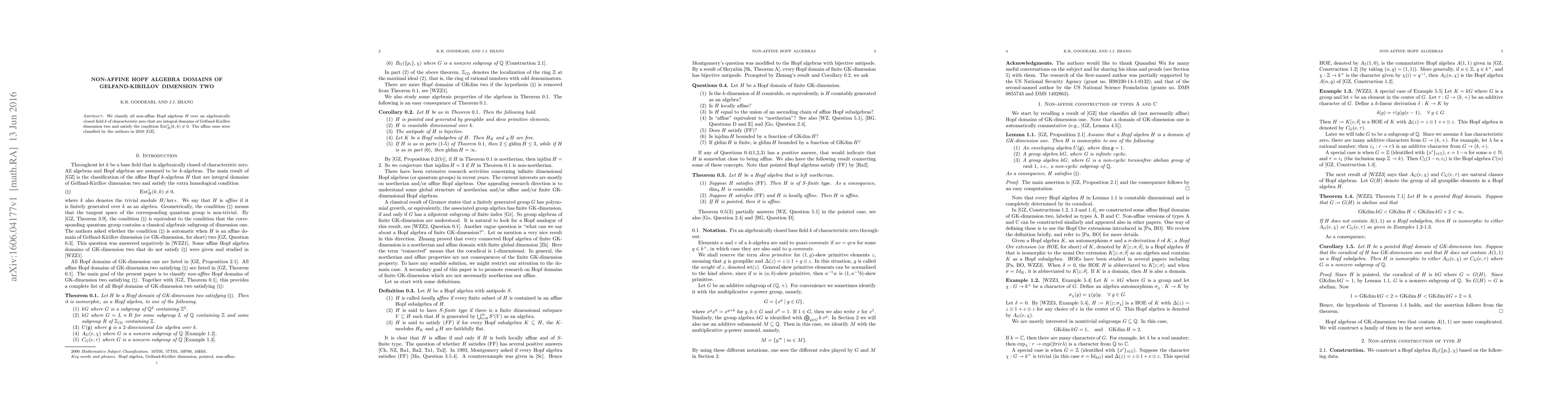 We classify all non-affine Hopf algebras $H$ over an algebraically closed field $k$ of characteristic zero that are integral domains of Gelfand-Kirillov dimension two and satisfy the condition $\text{Ext}^1_H(k, k) \neq 0$. The affine ones were classified by the authors in 2010.