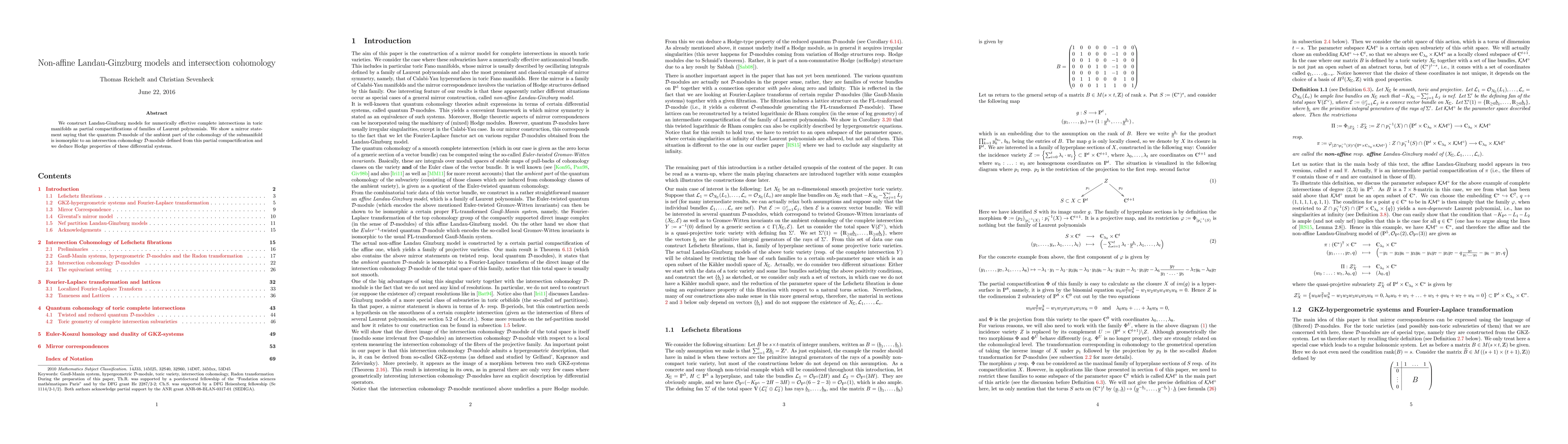 This paper constructs Landau-Ginzburg models for complete intersections in toric manifolds and establishes a mirror symmetry between the quantum D-module of the ambient cohomology and an intersection cohomology D-module, leading to insights into Hodge properties of the differential systems.