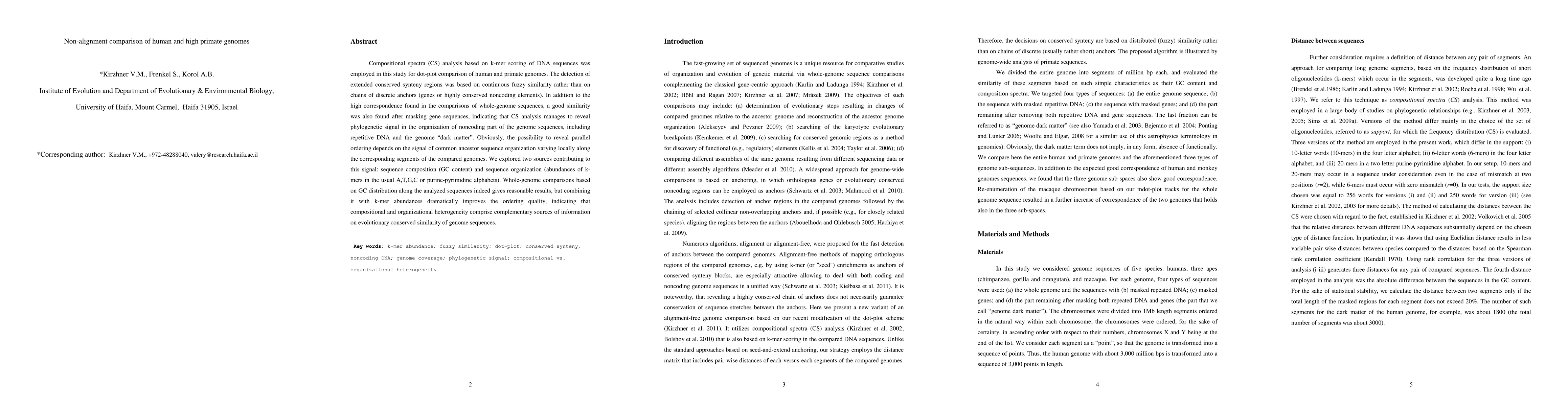 Researchers used a new method to compare human and primate genomes, finding similarities in non-coding regions like repetitive DNA. Their approach combined sequence composition and organization analysis for more accurate results.
