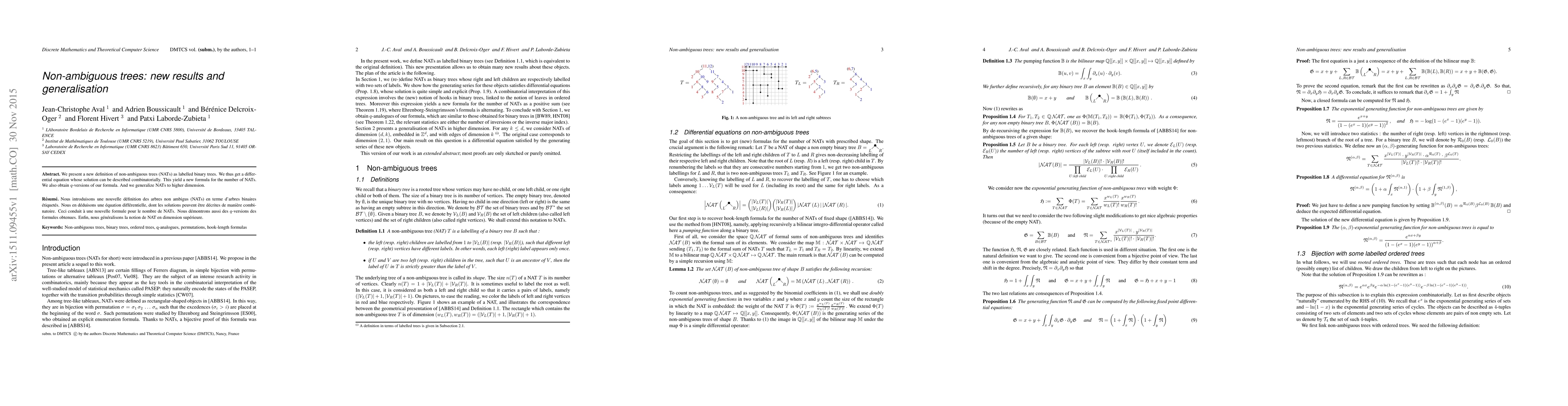 This paper introduces a new definition of non-ambiguous trees (NATs) as labelled binary trees, deriving a combinatorial solution to a differential equation and presenting a new formula for their count, along with q-versions, and extends the concept to higher dimensions.