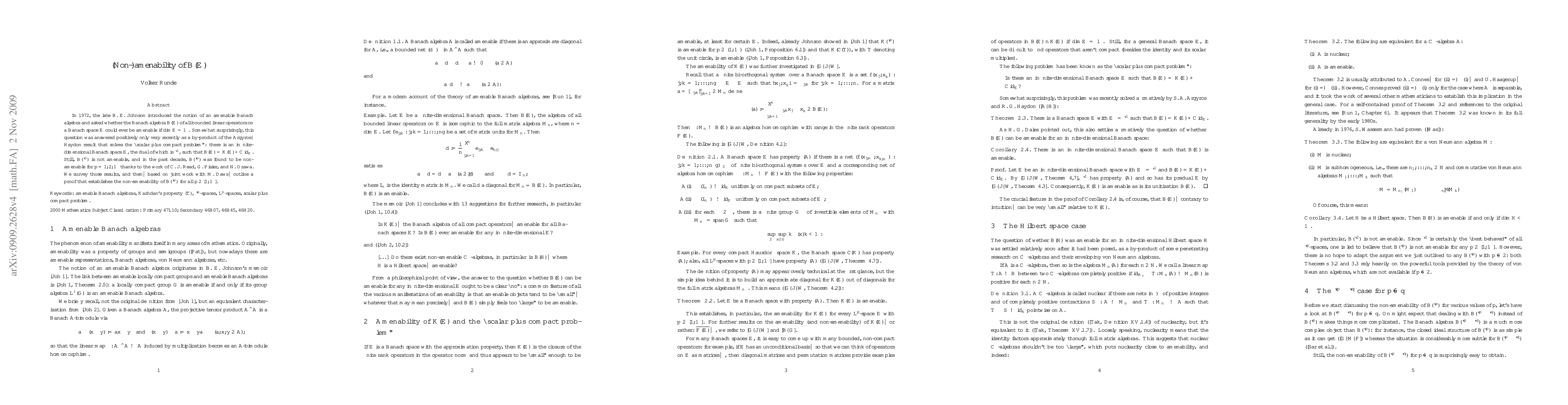 In 1972, the late B. E. Johnson introduced the notion of an amenable Banach algebra and asked whether the Banach algebra $B(E)$ of all bounded linear operators on a Banach space $E$ could ever be amenable if $\dim E = \infty$. Somewhat surprisingly, this question was answered positively only very recently as a by-product of the Argyros--Haydon result that solves the "scalar plus compact problem": there is an infinite-dimensional Banach space $E$, the dual of which is $\ell^1$, such that $B(E) = K(E)+ \mathbb{C} \id_E$. Still, $B(\ell^2)$ is not amenable, and in the past decade, $ B(\ell^p)$ was found to be non-amenable for $p=1,2,\infty$ thanks to the work of C. J. Read, G. Pisier, and N. Ozawa. We survey those results, and then--based on joint work with M. Daws--outline a proof that establishes the non-amenability of $B(\ell^p)$ for all $p \in [1,\infty]$.