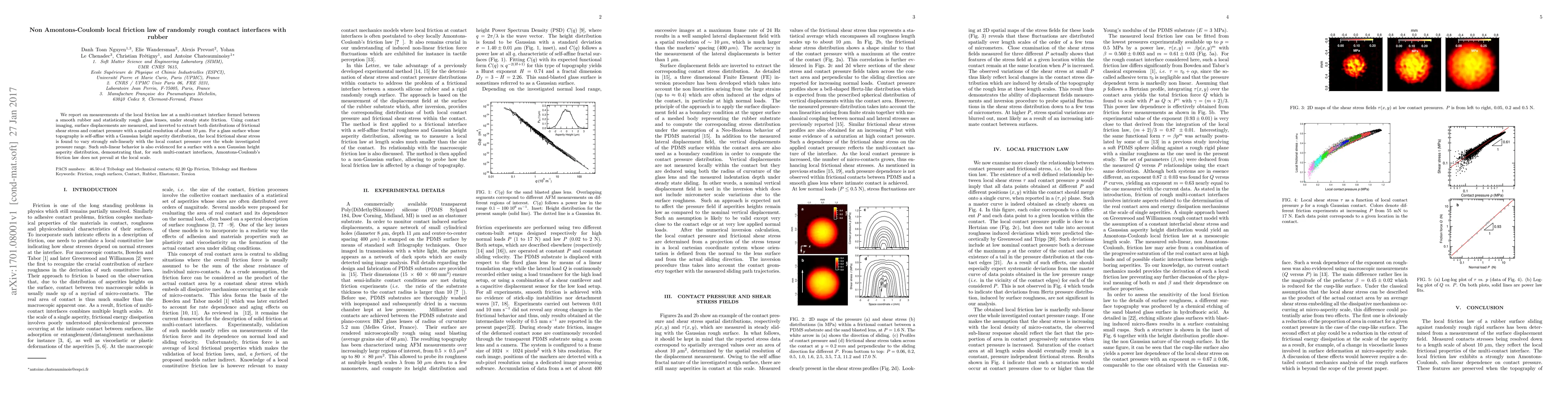 This study measures the local friction law at a rubber-glass contact interface, revealing that the local frictional shear stress varies sub-linearly with contact pressure, challenging Amontons-Coulomb's friction law for randomly rough surfaces. The research uses contact imaging to achieve high spatial resolution measurements.