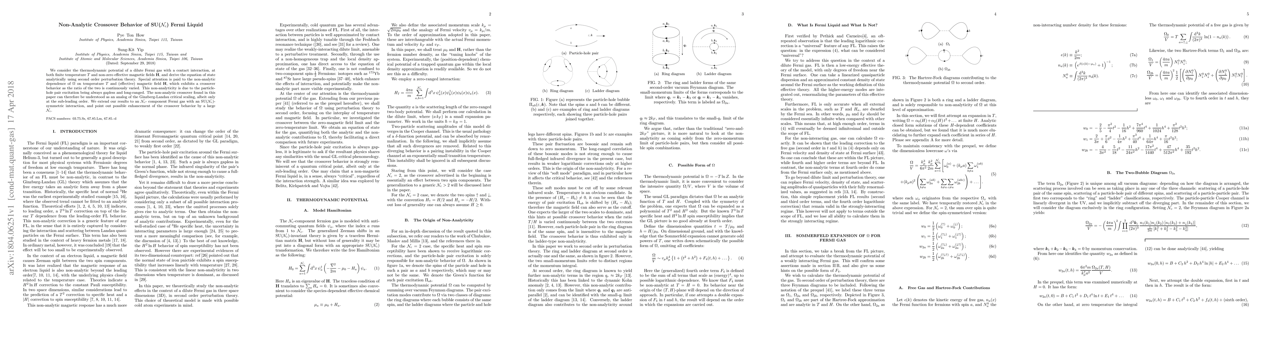 We consider the thermodynamic potential of a dilute Fermi gas with a contact interaction, at both finite temperature $T$ and non-zero effective magnetic fields $\mathbf{H}$, and derive the equation of state analytically using second order perturbation theory. Special attention is paid to the non-analytic dependence of $\Omega$ on temperature $T$ and (effective) magnetic field $\mathbf{H}$, which exhibits a crossover behavior as the ratio of the two is continuously varied. This non-analyticity is due to the particle-hole pair excitation being always gapless and long-ranged. The non-analytic crossover found in this paper can therefore be understood as an analog of the Ginzberg-Landau critical scaling, albeit only at the sub-leading order. We extend our results to an $\mathcal{N}_c$- component Fermi gas with an $\mathrm{SU}(\mathcal{N}_c)$-symmetric interaction, and point out possible enhancement of the crossover behavior by a large $\mathcal{N}_c$.