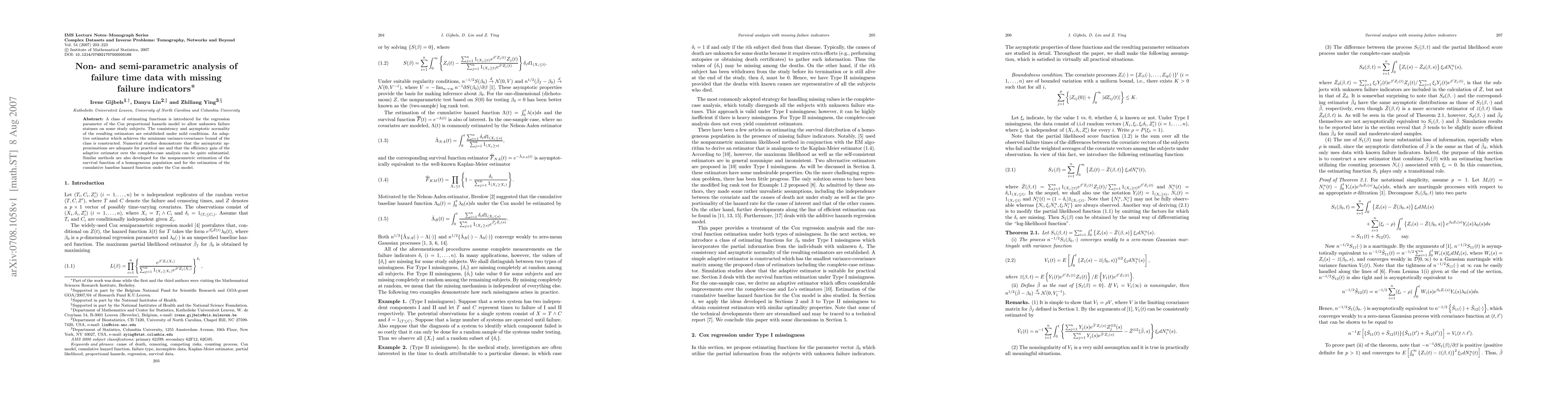 Researchers developed methods for analyzing failure time data with missing failure indicators in Cox proportional hazards models, achieving substantial efficiency gains over traditional complete-case analysis.