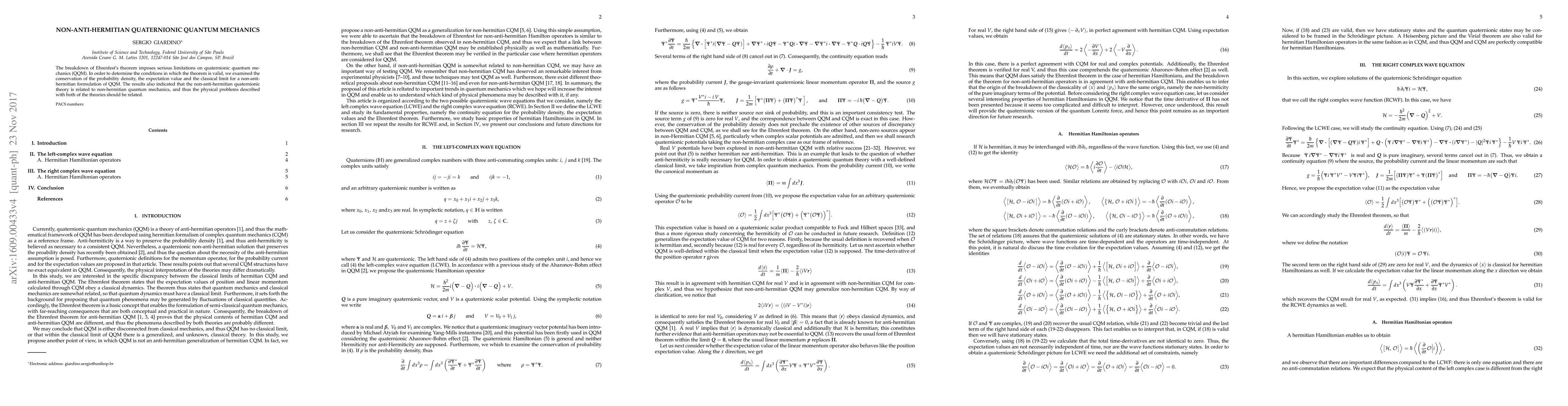 This paper explores the limitations of quaternionic quantum mechanics (QQM) in light of Ehrenfest's theorem, finding that a non-anti-hermitian formulation maintains the probability density conservation and classical limit, suggesting a connection to non-hermitian quantum mechanics.