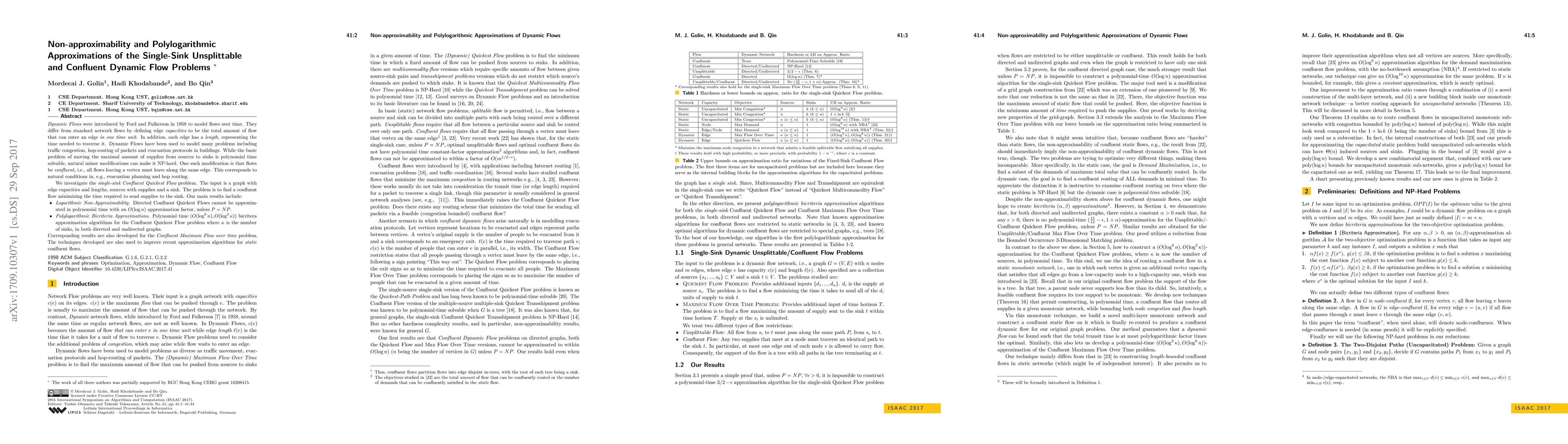 This paper explores the computational complexity of the Single-Sink Unsplittable and Confluent Dynamic Flow Problems, proving logarithmic non-approximability for the Confluent Quickest Flow problem unless P=NP. It also presents polylogarithmic bicriteria approximation algorithms for both directed and undirected graphs.