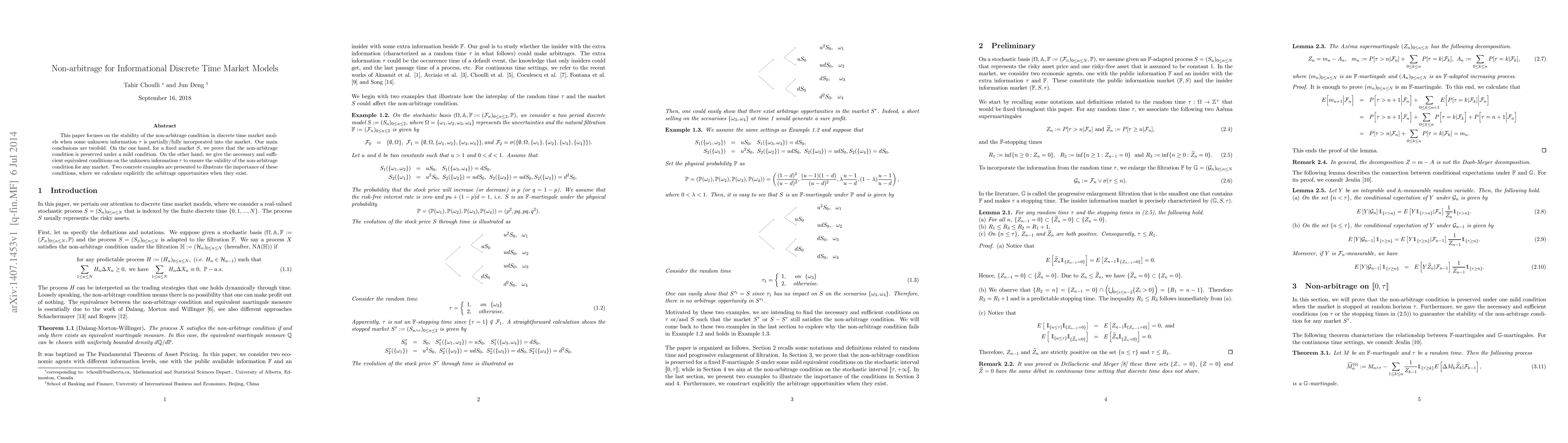 This paper investigates the stability of non-arbitrage conditions in discrete time market models with partially or fully incorporated unknown information $\tau$. The authors prove that the non-arbitrage condition remains valid under mild conditions and provide necessary and sufficient conditions for $\tau$ to maintain non-arbitrage, illustrated with two examples highlighting potential arbitrage opportunities.